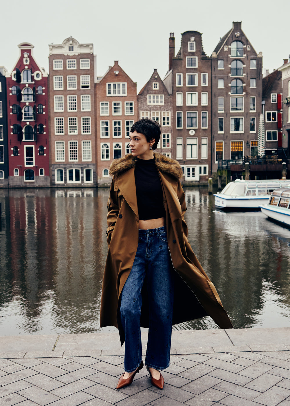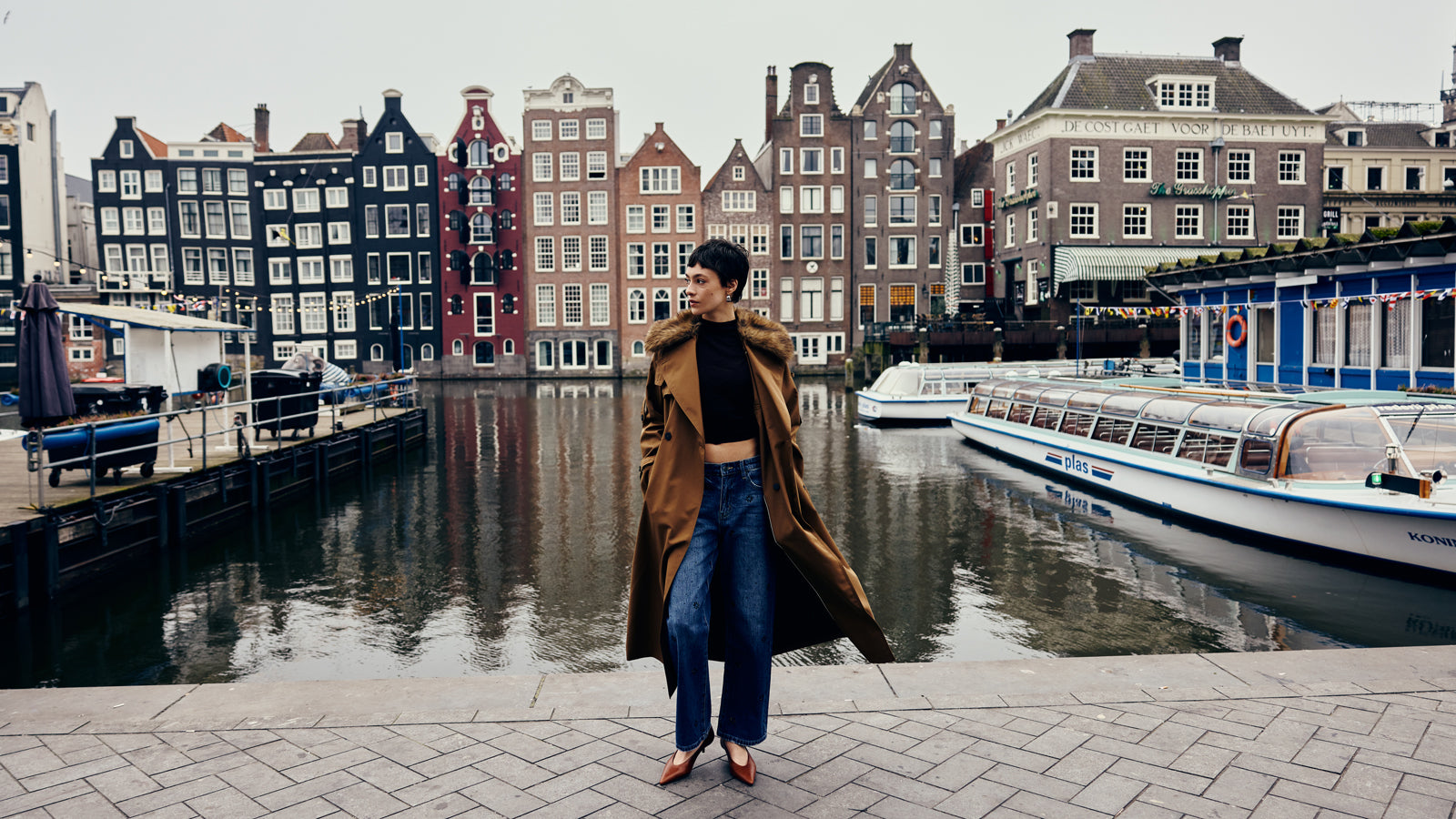 Captured along the frost-kissed canals of Amsterdam, our winter editorial showcases the refined structure and elevated comfort of our signature denim against a backdrop of historic townhouses and softly glowing streetlamps. Framed by cobblestone bridges and crisp northern light, each look blends modern sophistication with effortless wearability — designed to move seamlessly through the city’s quiet, snow-dusted charm.