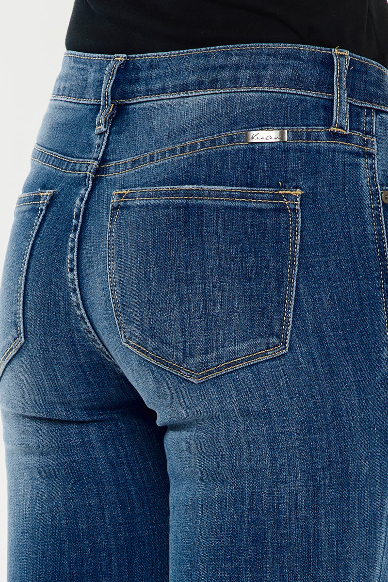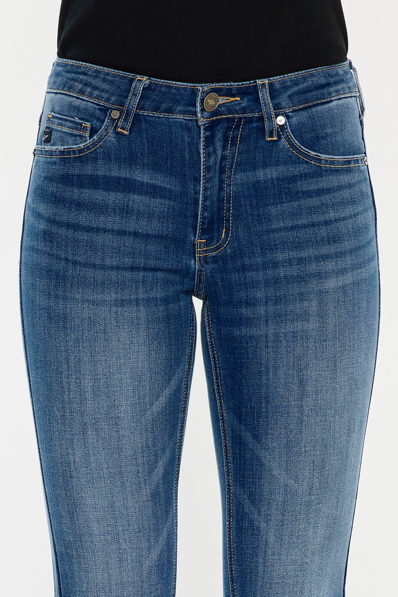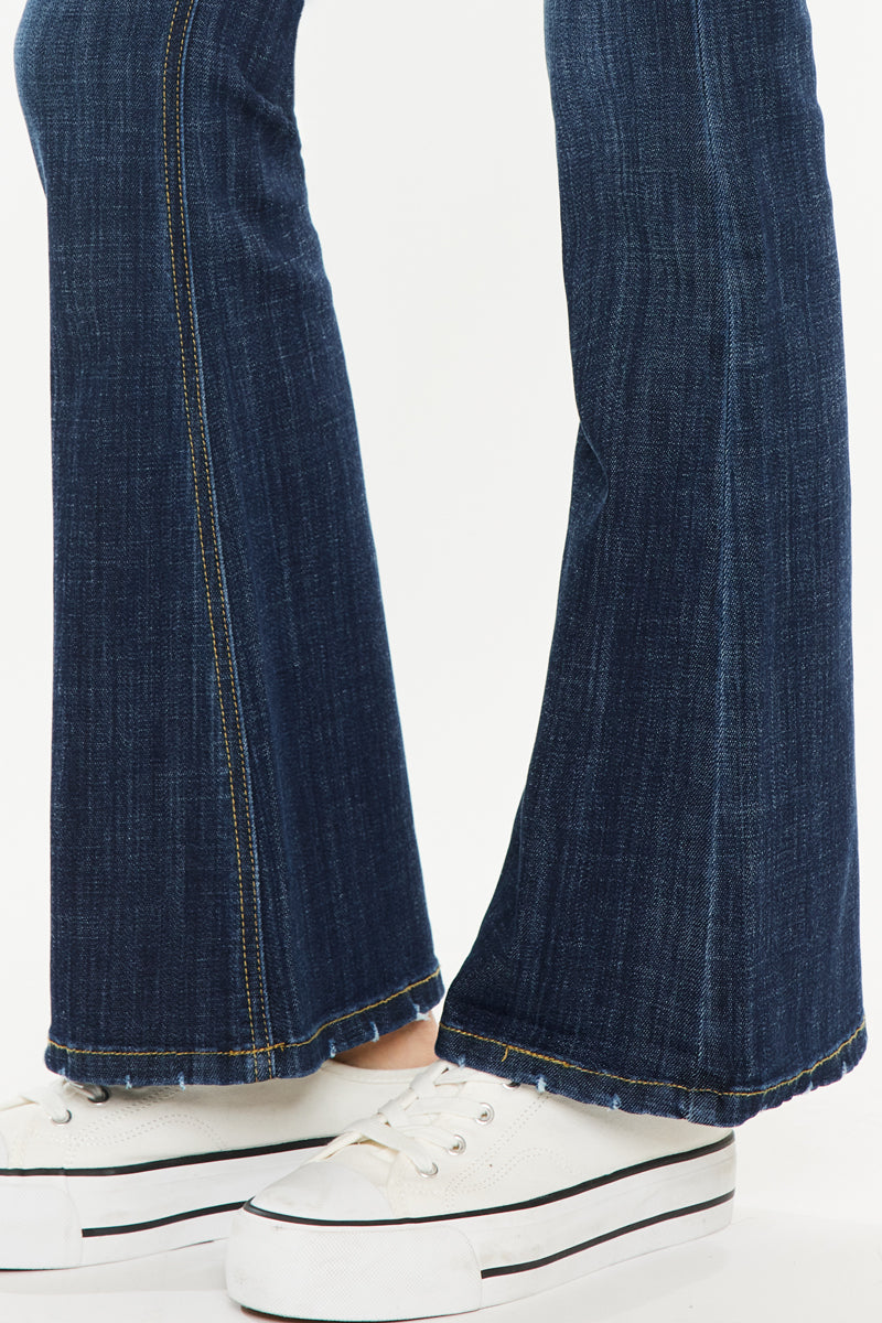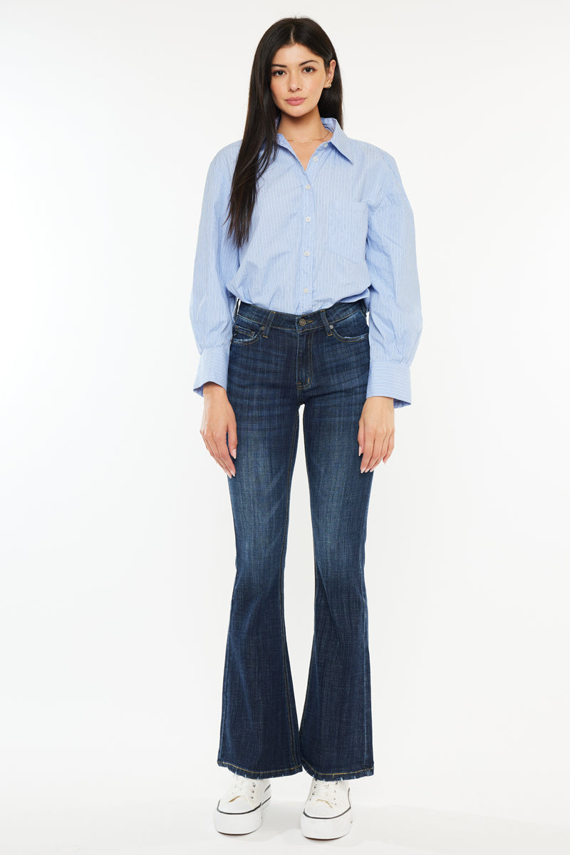 Express your style sense with this pair of flare jeans featuring a mid-rise waistline, whiskering, fading, slight distressing at pocket lines, contrast stitching, single-button closure with zip-fly at the front, and a 5-pocket design.