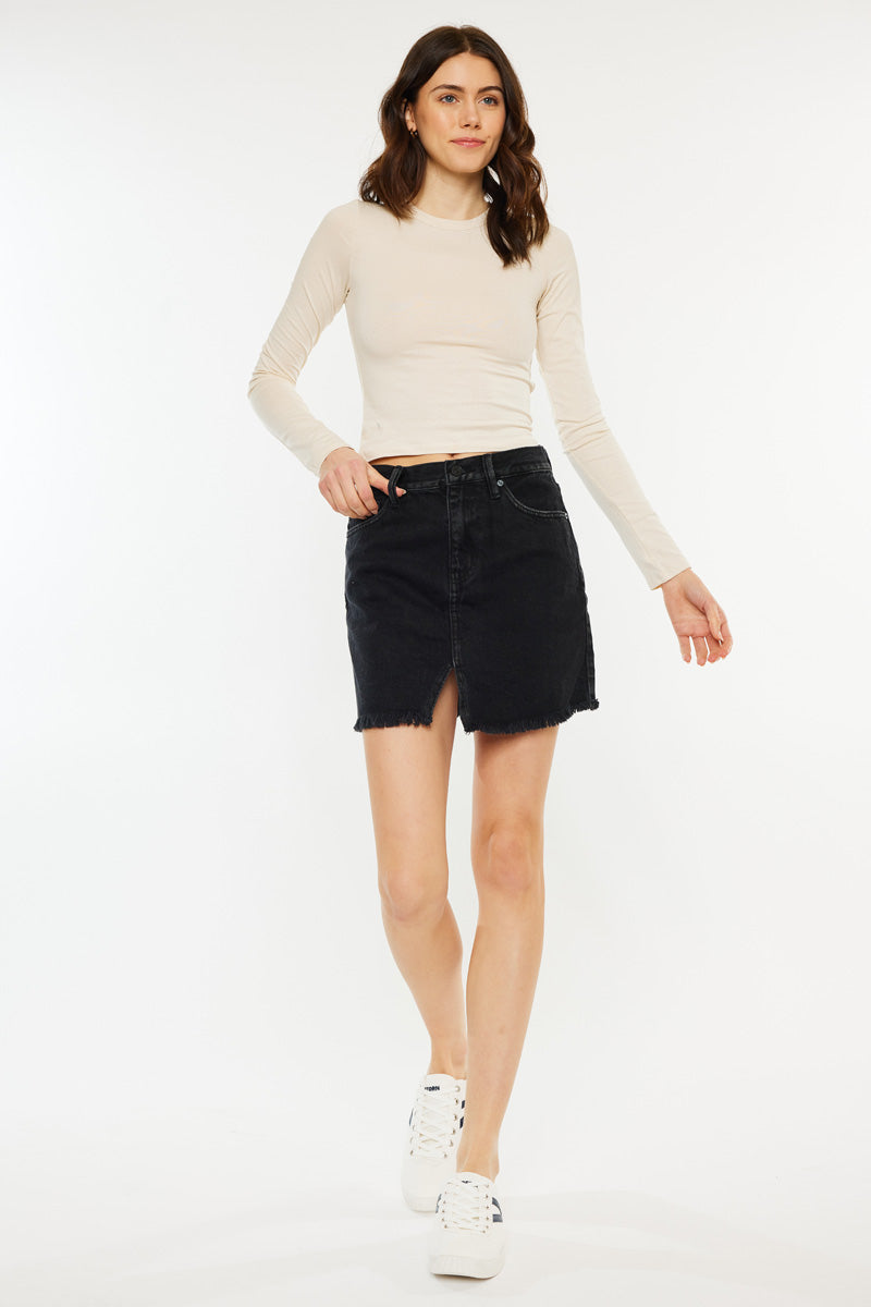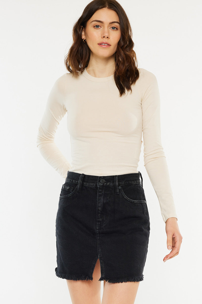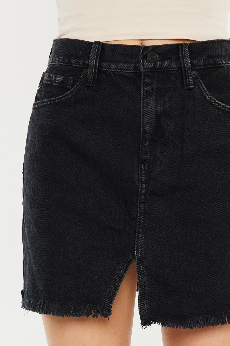 Join the party with our Audrey High Rise Skirt. A classic skirt style that features a frayed and split hem for that extra edge. Made with our rigid denim so your skirt stays in shape after multiple washes!