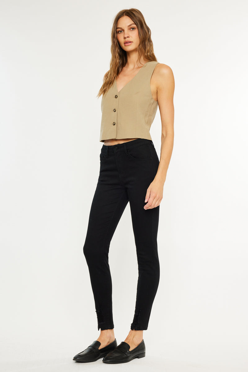 Our Aya High Rise Super Skinny comes with distressed hem detail and a fitted silhouette. This style comes in a super soft, stretchable fabric, that won't bag out with each wear. Comfortable enough for you to move yet maintains its shape for a perfect fit every time.