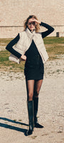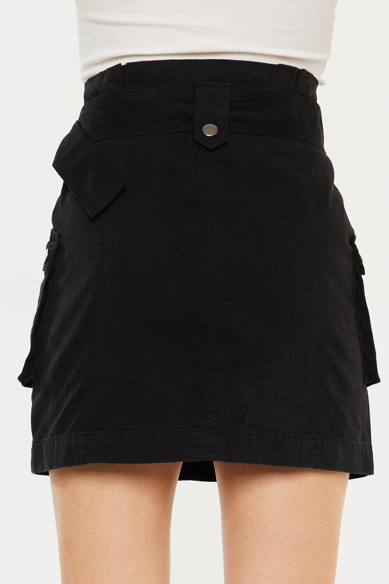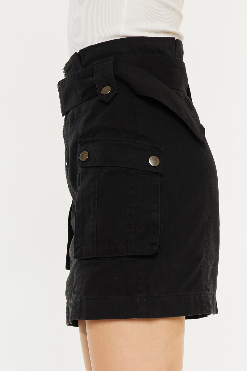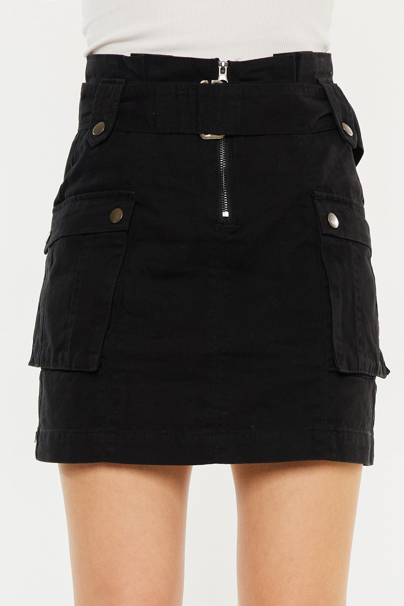 Our Berlin skirt has just the right amount of edge for that grunge chic style inspired by the 90's Nirvana era. Release your inner rockstar with this black mini skirt featuring a paperbag waistband with a matching belt with silver hardware and button snaps all in an authentic 100% cotton blend. Comes with 2 front spacious pockets, and a zip-up closure perfect for pairing with black boots or pumps.