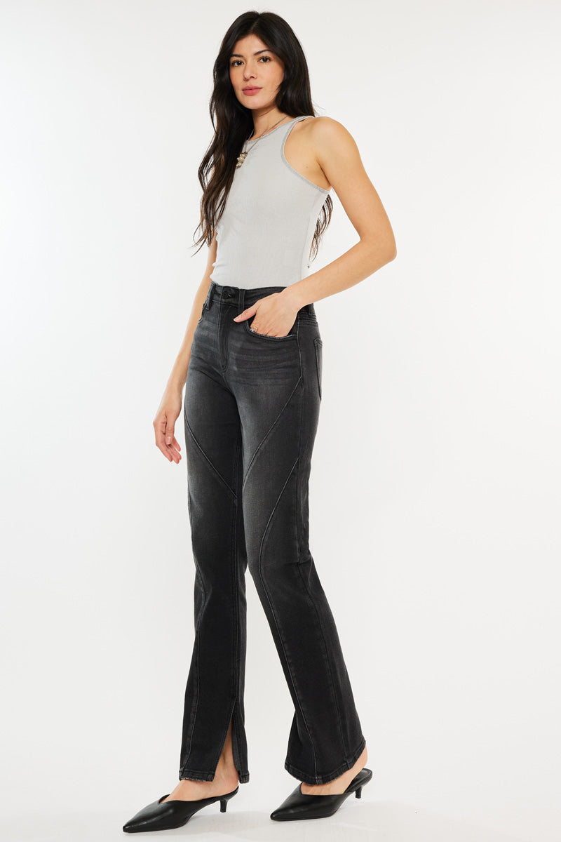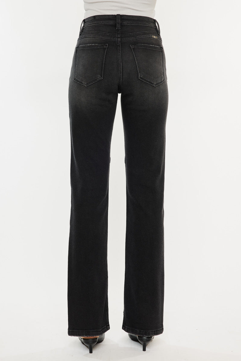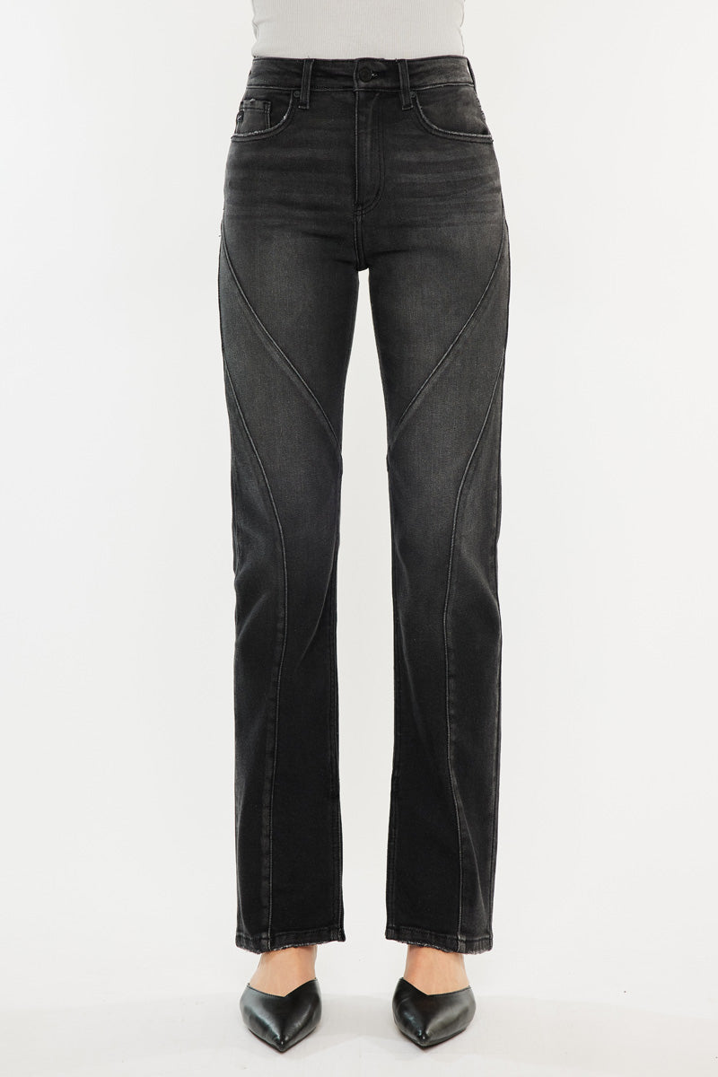 Introducing our sleek and stylish straight jeans, designed to elevate your wardrobe with its sleek and modern style. These jeans feature a double back yoke detail that adds a touch of sophistication to the overall design. The side slit adds a unique twist to classic straight leg silhouette, making it a versatile piece that can be dressed up or down.