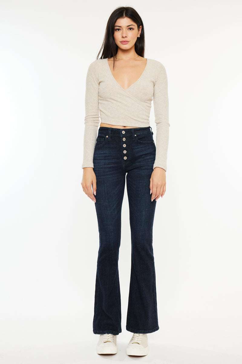 Our Blaire High Rise Jeans come in a bootcut design with a petite fit featuring a gently faded wash and whiskering details. Sits above the natural waistline as it tapers down the thigh and begins to flare out at the calf. Made with soft stretch denim that moves with your body providing you with lasting comfort and style all day long. Features a classic five-pocket design and four-button front closure.