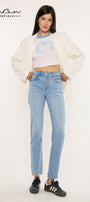 Introducing our Breanne Essentials High Rise Straight Jeans, the perfect addition to your denim collection. These jeans feature a trendy destroyed hem, adding a touch of edginess to your outfit. With a high rise waist, they provide a flattering fit and elongate your legs for a sleek silhouette. The straight leg design offers a timeless and versatile style that can be dressed up or down for any occasion. Whether you're going for a casual day out or a night on the town, the Breanne High Rise Straight Jeans are a must-have for any fashion-forward individual.