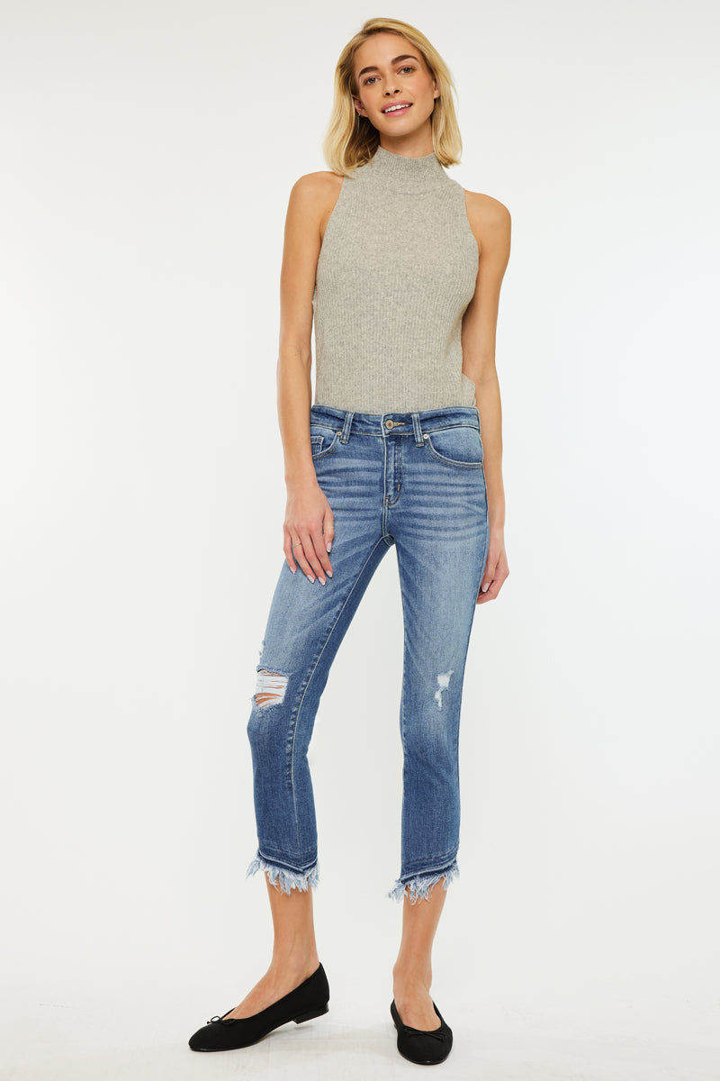 You'll love our Camila Mid Rise Ankle Skinny Jeans that are sure to turn heads everywhere you go! Create a fun, spunky vibe for any outfit! Featuring distressed details, slanted fringe hems, a 5-pocket design, and single button closure and zip fly.