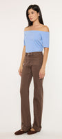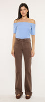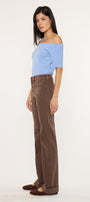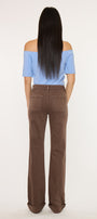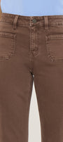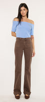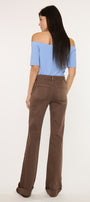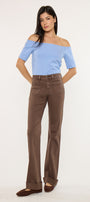 In a rich dark brown color, we have our Carol High Rise Flare Jeans. This relaxed flare style sits high on the waist and offers a tight snug fit without feeling uncomfortable. The soft flexible fabric allows for freedom of movement while upholding its structure and not getting baggy throughout the day. At the front we have front patch pockets, no distressed details and a cuffed hem.