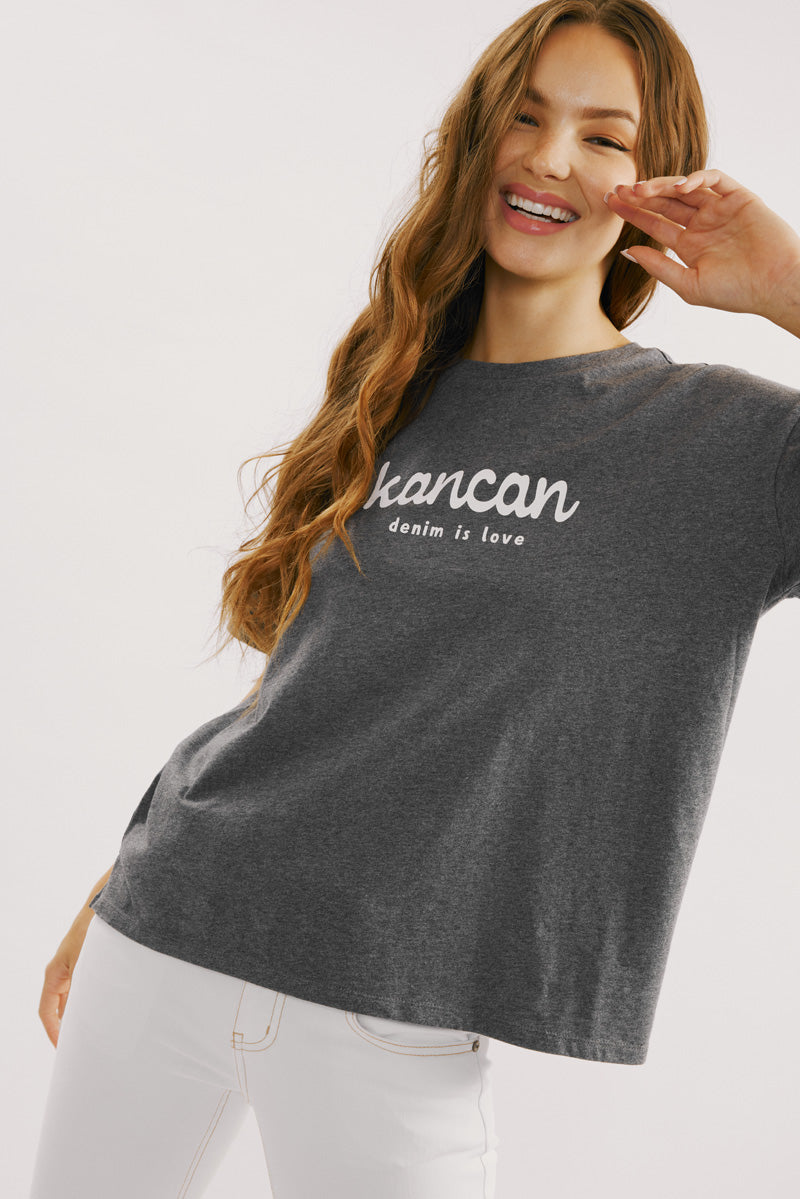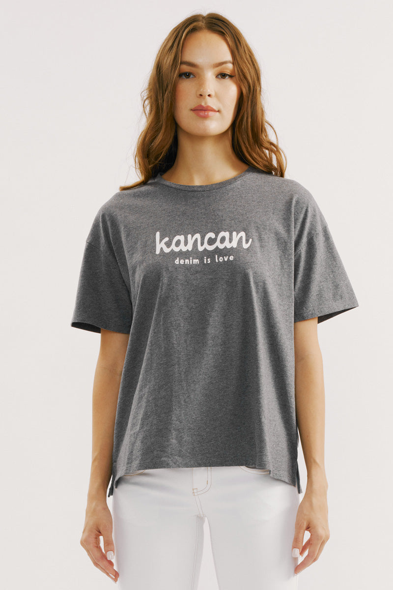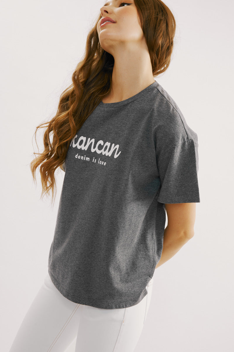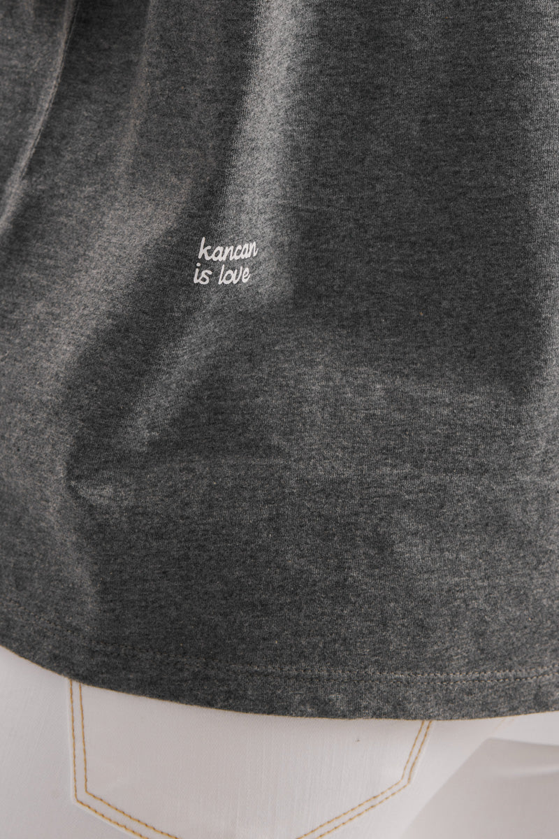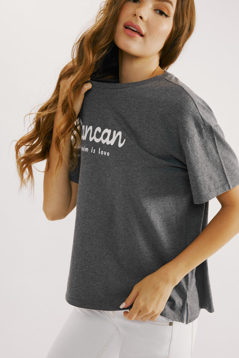 Our Casey Boyfriend Shirt comes in a comfortable and loose fit made with our super soft fabric. Comes in heather gray color with a white printed text design on the front and the bottom back.