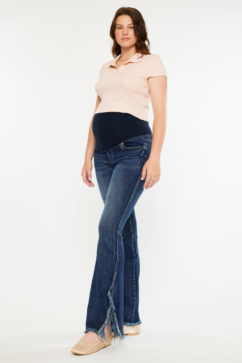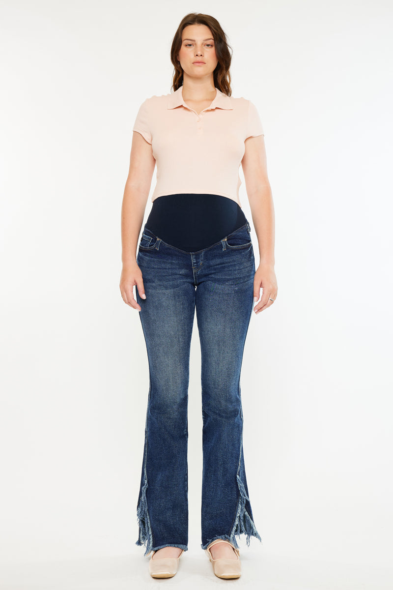 Our Chicago Maternity Bootcut jeans are the perfect style to keep you comfortable and chic all day long. Elastic panels at the waistband fit comfortably throughout and after pregnancy. These jeans feature a classic 5-pocket and frayed hem bottom with a side split adding an extra flair to your outfit!