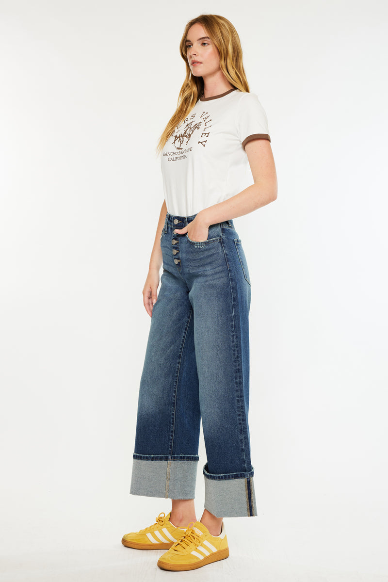 Collie Essentials Ultra High Rise Cropped Wide Leg Jeans