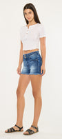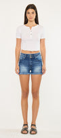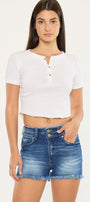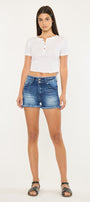This pair of light wash shorts creates a cute, boho-chic look, making it a fun addition to your warm-weather wardrobe! Create a figure-flattering look and ease of styling with a range of tops! Featuring a high-rise fit that cinch and accentuates your waist, frayed hem, contrast stitching, whiskering, fading, 5-pocket design, and a double button front closure with zip fly.