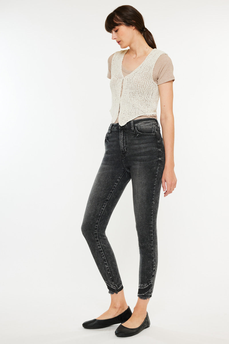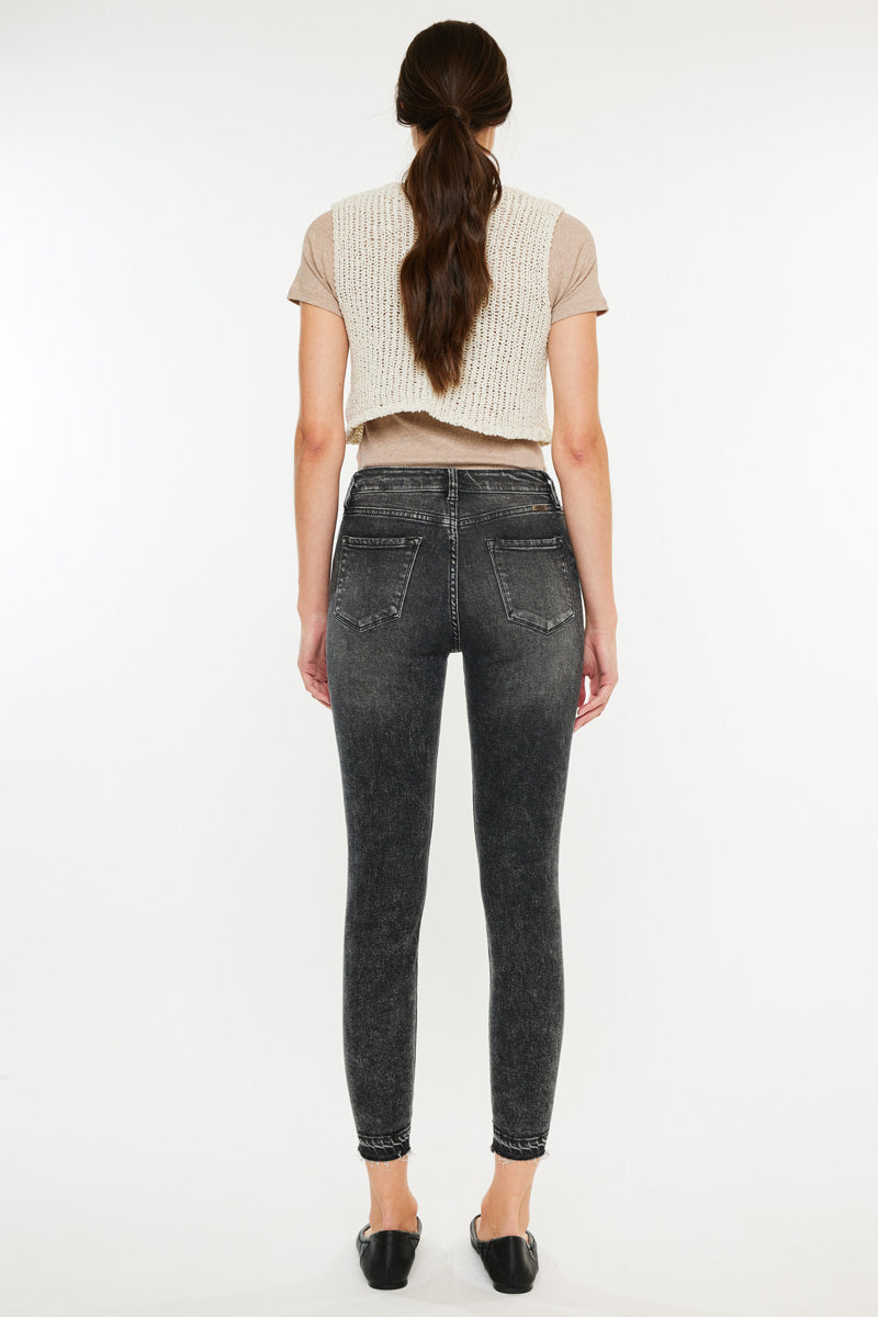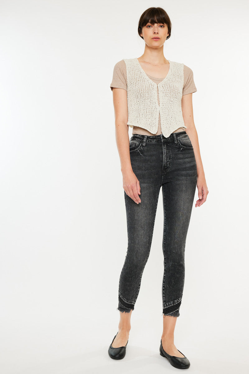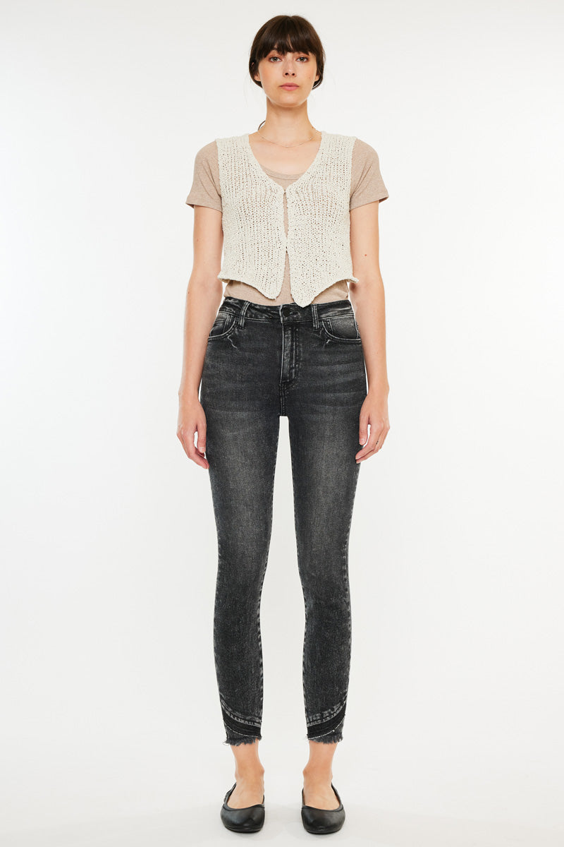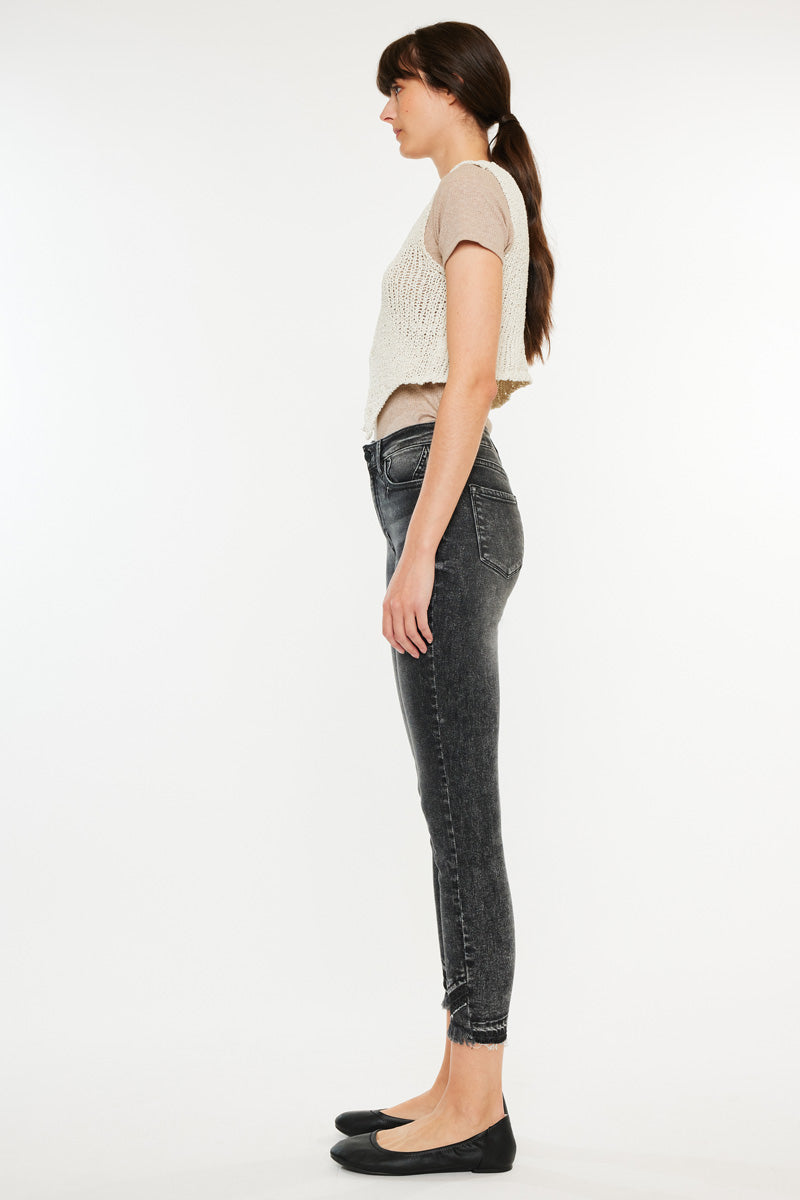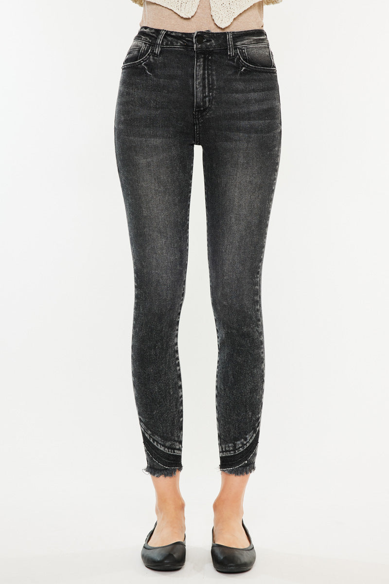 Our Shiloh High Rise Jeans sit above the natural waistline as they taper down the leg and end with a raw twisted, released hem. Made with stretch denim that fits like a glove with maximum comfort. Features a classic five-pocket design, single-button front, and zip-fly closure.