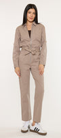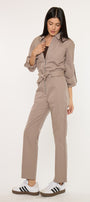 Turn heads everywhere you go with our stylish Egypt Jumpsuit! You are sure to become an instant fashionista with this trendy-chic jumpsuit with a straight-leg fit in a khaki wash! Featuring a regular collar, an elastic waistband, a self-tie belt, 4 pocket design, and a button and expose zip-up closure.