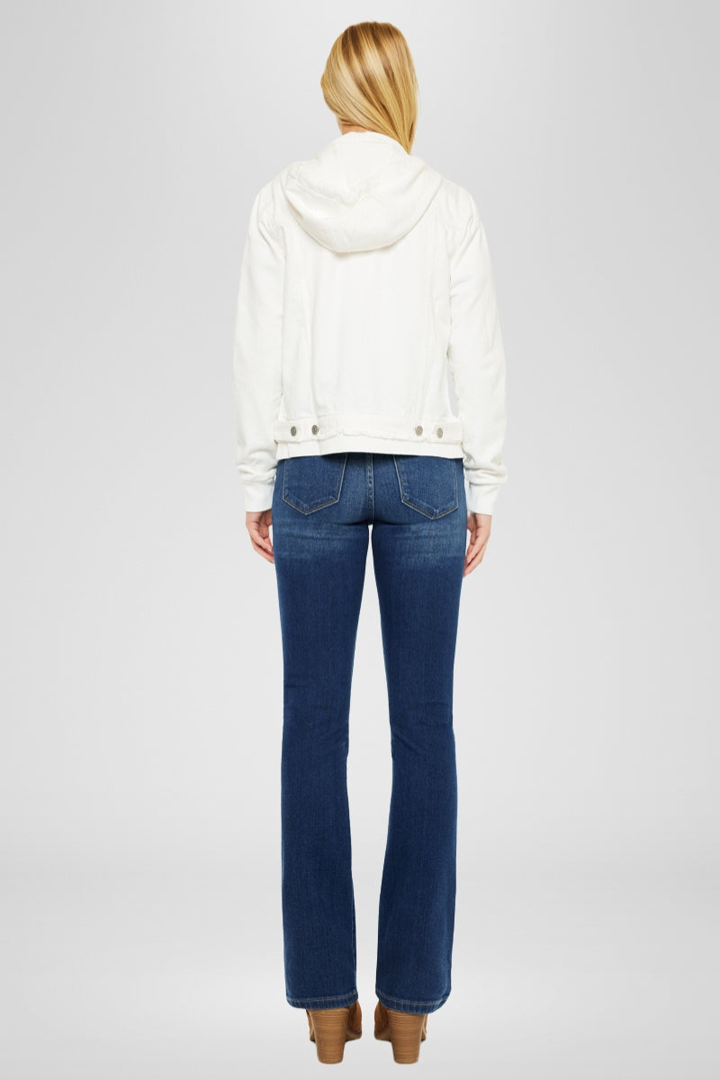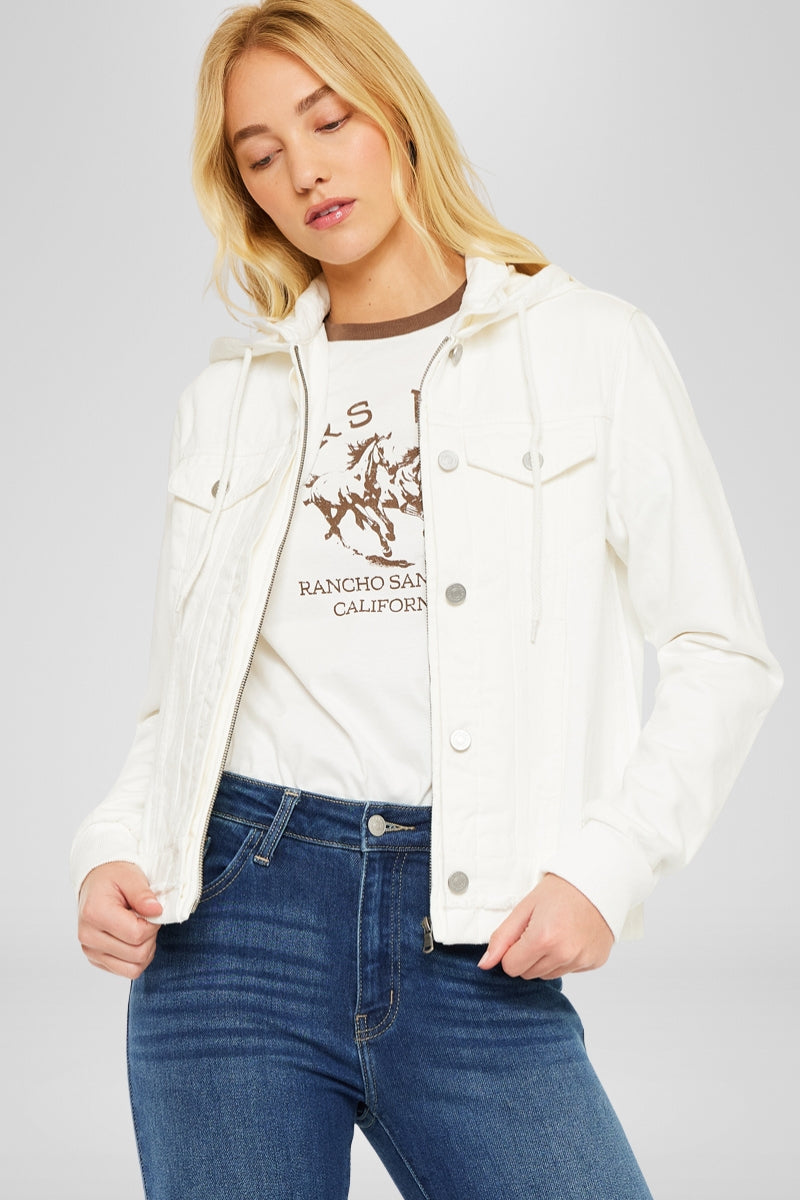 Stay cozy and stylish with our Eleni denim hoodie jacket. This versatile piece is perfect for those chilly days, providing you with the warmth you need while keeping you on-trend. Made from rigid denim, it offers durability and a structured fit that will last. Whether you're heading out for a casual outing or adding a touch of coolness to your everyday look, this white denim jacket is a must-have addition to your wardrobe.