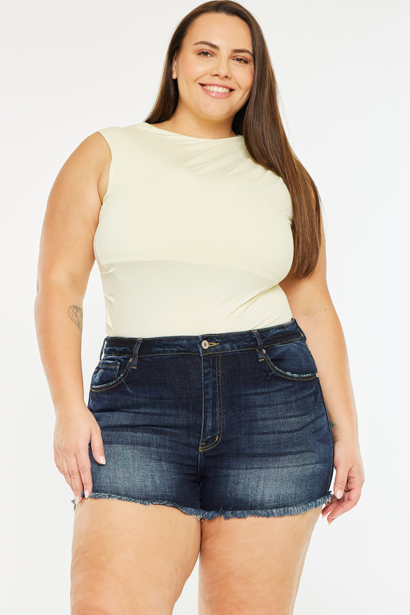 This medium wash short features a frayed hem with fading and whiskering detail. Its style accentuates every curve giving you a sleek yet fitted silhouette that complements any vibe. Sitting right at the natural waistline with a high-rise and classic five-pocket design and single-button closure. It's a refreshing take on a classic short design.