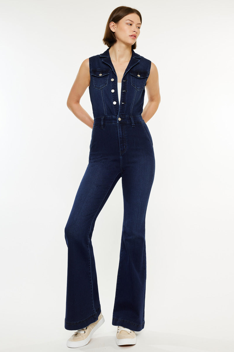 Ready to turn heads everywhere you go with our Fawn Super Flare Jumpsuit? A new super stylish sleeveless jumpsuit in a beautiful Dark wash. The sleeveless look giving it a on the go day out vibe or a chill night out vibe. Made from a super stretch Denim guaranteed comfort all day and night.