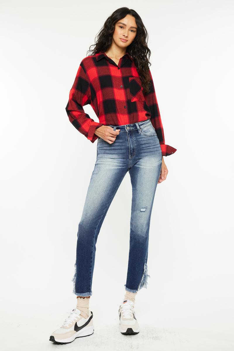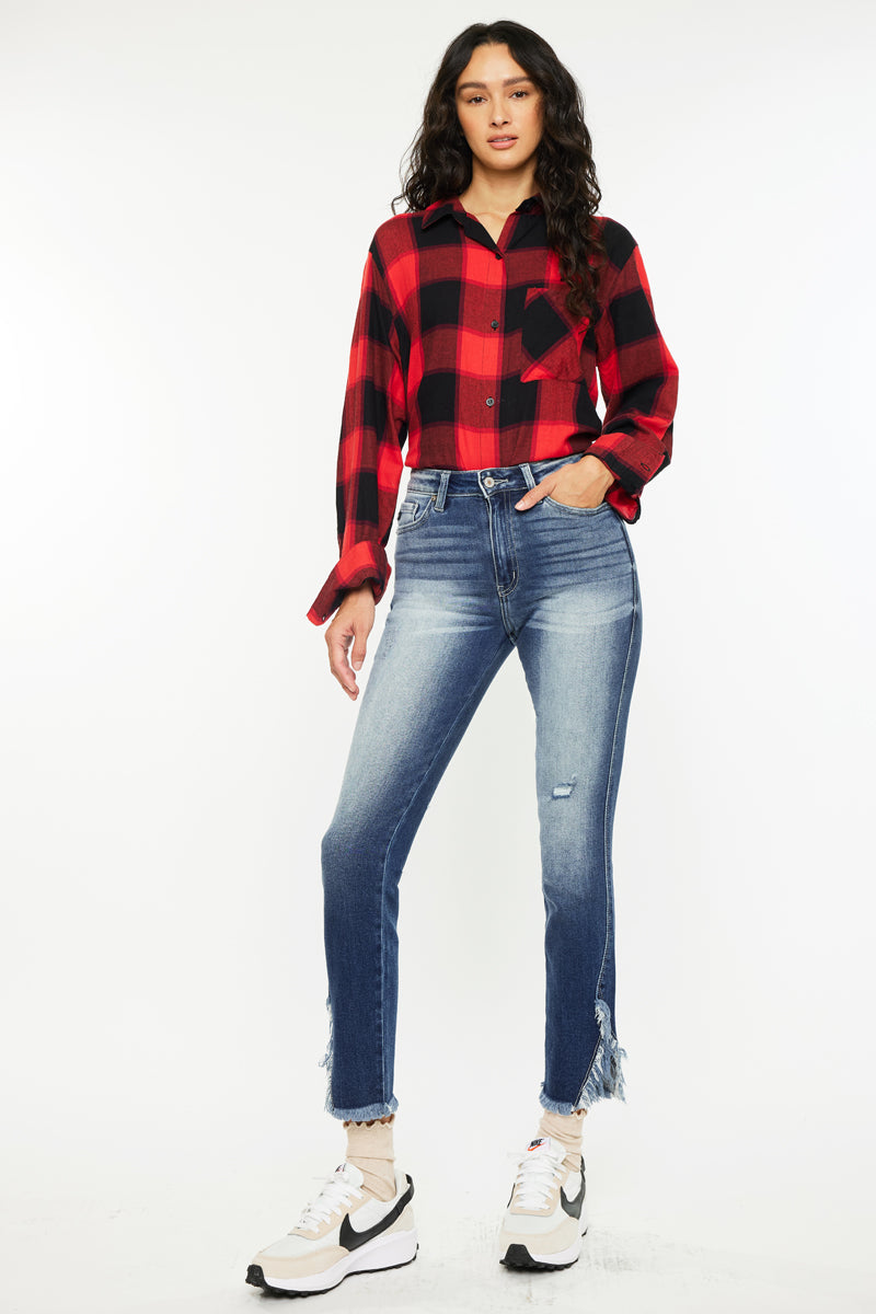 The Geneva High Rise Ankle Skinny melds a faded medium wash with a slit, raw hem to create a chic fit. Sitting above the waist with minor whiskering at the front, these jean's goal is to dazzle and attract all the right attention.