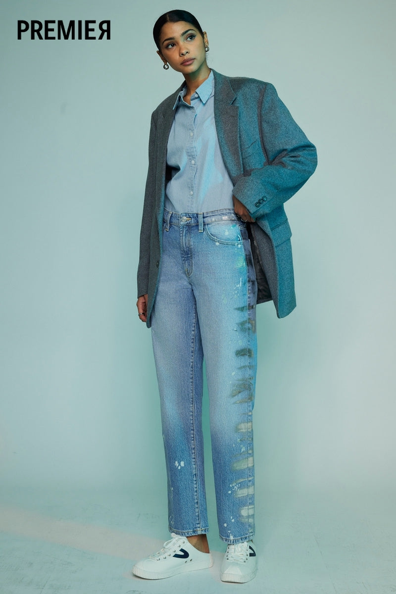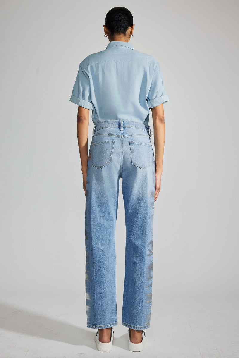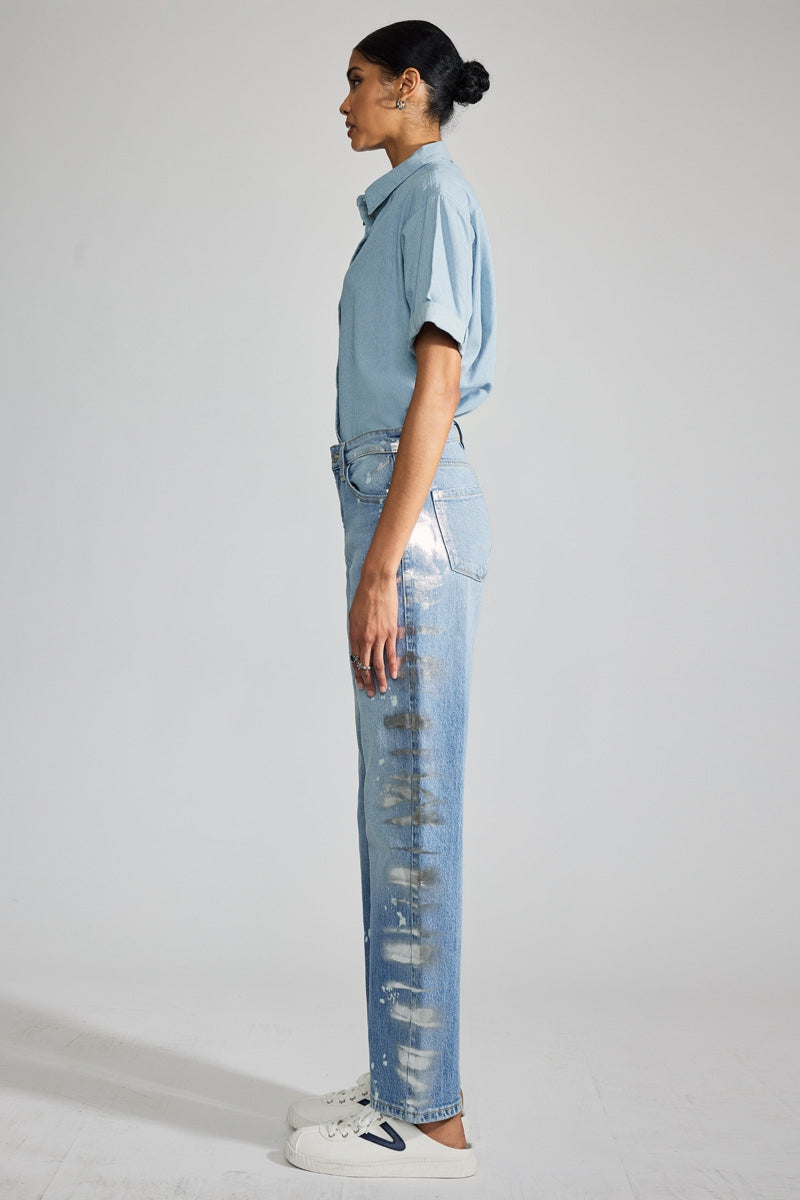 Our Genevieve Premier High Rise Straight Jeans are made domestically in small batches by a local wash factory in Los Angeles. Each pair of this denim is single-handly, finely washed in a beautiful medium color with medium fading on the front and back. Sits above the waist and relaxes throughout the leg for a straight leg fit. Features metallic detail with white splatter,5-pocket style, one button closure, and zip fly. Feel good about what you wear in these premiere Kancan jeans.