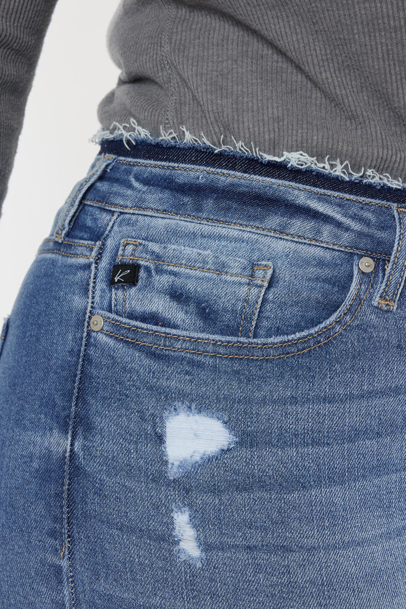 An ankle skinny denim with fading and light distress details that create a chic worn-in vibe. Our Ivory High Rise Super Skinny Jeans sit above the natural waistline as they taper down the leg for a skinny jean fit that stops right at the ankle, perfect for the summer season. Made with stretch denim that's breathable and flexible, allowing you to move in whichever way you want. Features a classic five-pocket design, raw waistband detail, single-button front, and zip-fly closure.