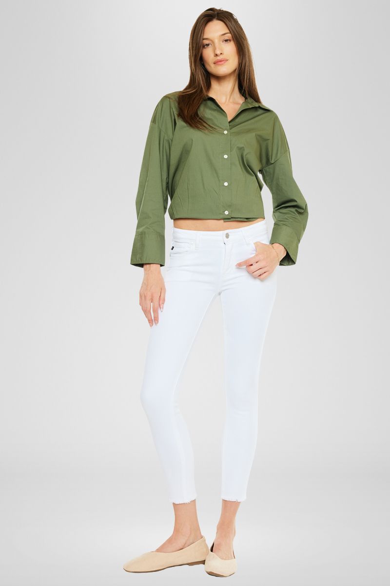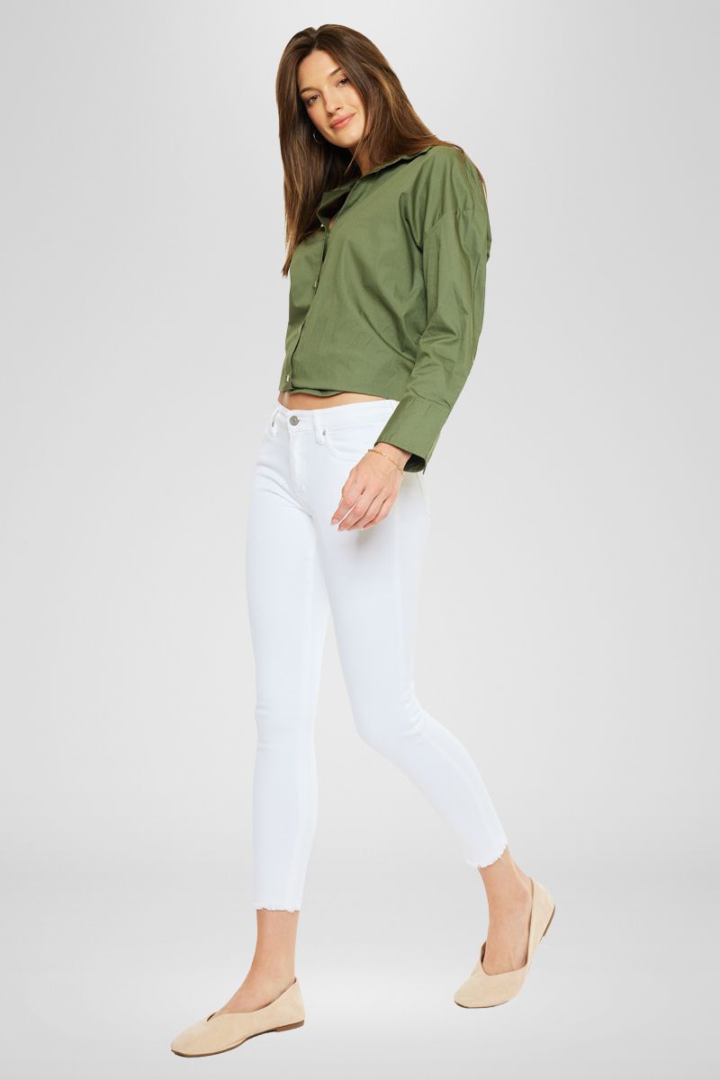 Our Ivy Mid Rise Jeans are the perfect classic pair, simple but very chic at the same time. Sits right at the natural waistline as it tapers down the leg creating a skin-tight fit that's flattering and stylish. Made with soft, stretch denim that's durable and comfortable. Features a classic five-pocket design, single-button front, and zip-fly closure.