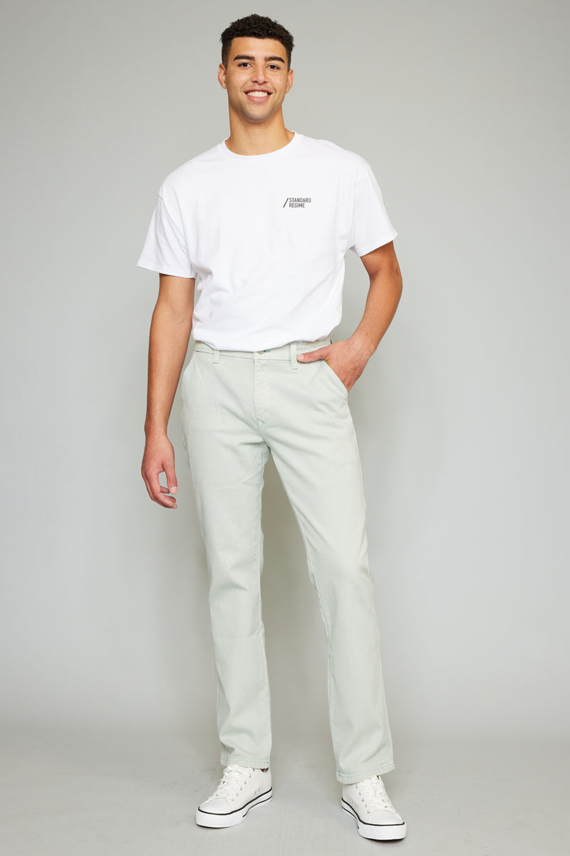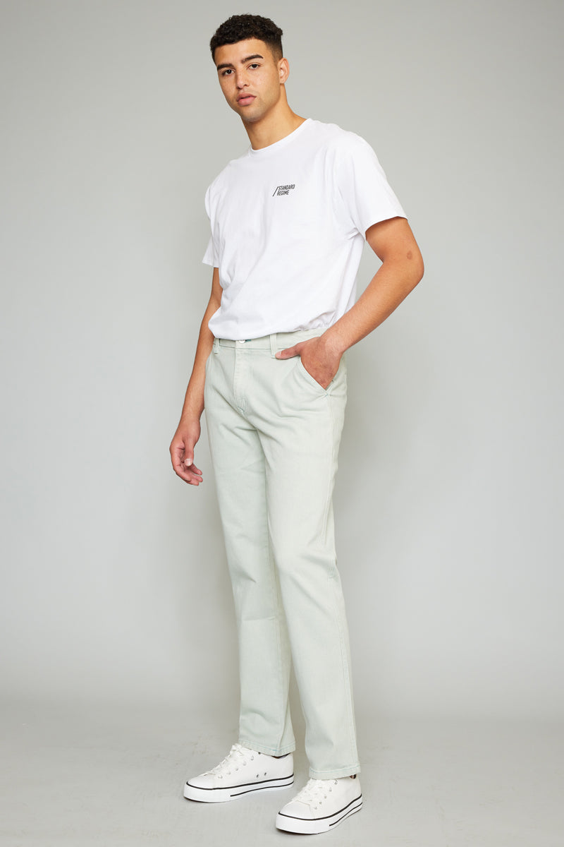 Show off your trendy taste in fashion with this pair of jeans featuring a slim straight fit. A gorgeous sage tone that will give you an extra pop of color. Features contrast stitching, a single button zip fly closure, and a 5-pocket design.