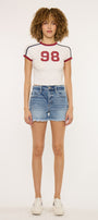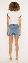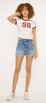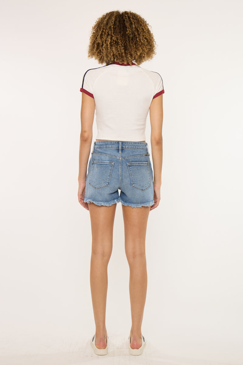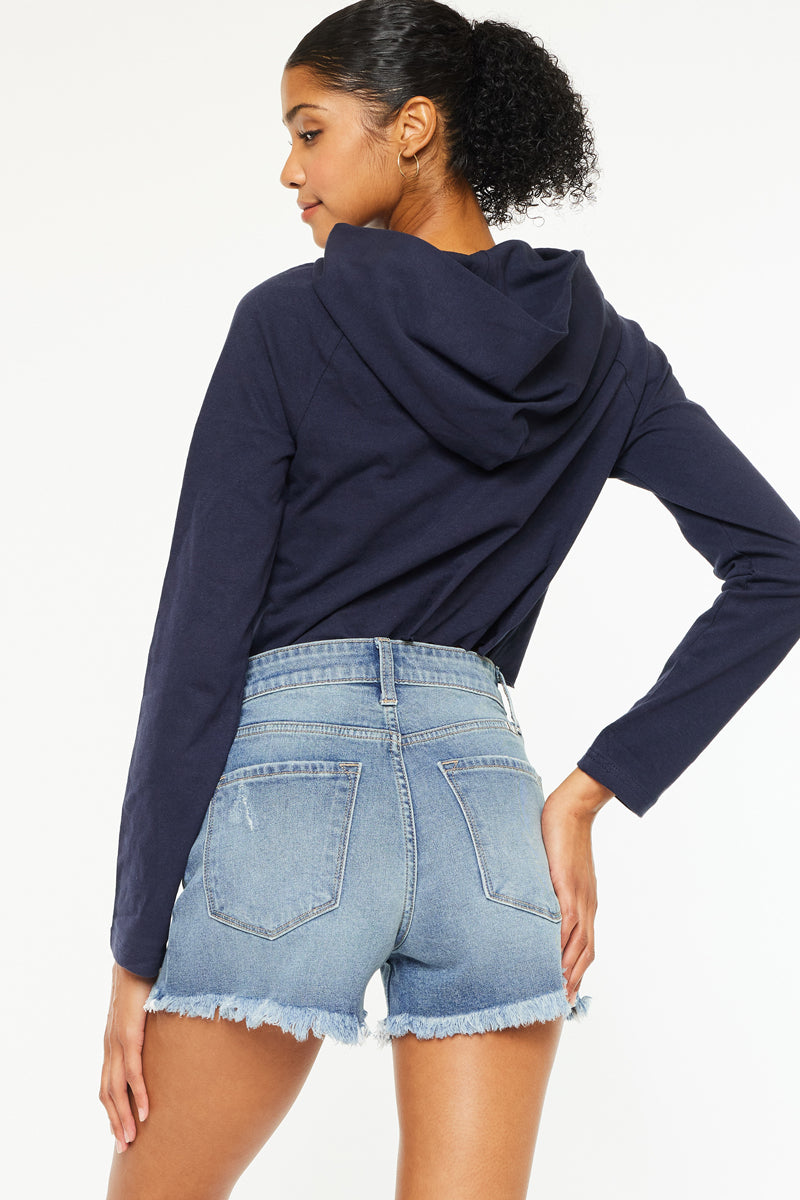 Create your next chic outfit with our Janelle Essentials High Rise Mom Shorts. In a classic Medium Wash color to easily pair with your favorite tops. Features a frayed hem, classic 5-pockets, and a single button closure with a zip fly.