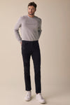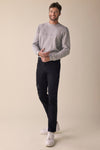 Enjoy your simple everyday style with this pair of slim straight jeans featuring patched distressed detailing throughout, a single button zip fly closure, minimal hardware, and a 5-pocket design.