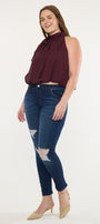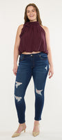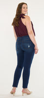 Our Jennifer Mid Rise Jeans come in an ultra-smooth super skinny style with worn-in, faded & whiskering details as well as moderate distress. It comes in a beautiful deep ocean blue wash that is vibrant and sure to turn heads. Made with super-stretch denim and sits right at the natural waistline for an easy, comfortable fit every time. Features a classic five-pocket design, single-button front, and zip-fly closure.
