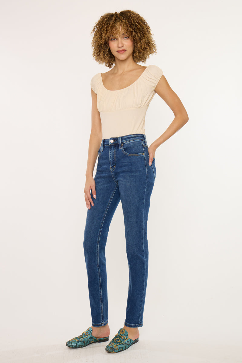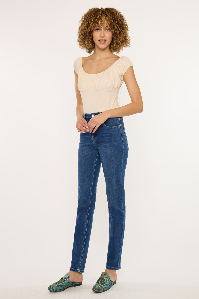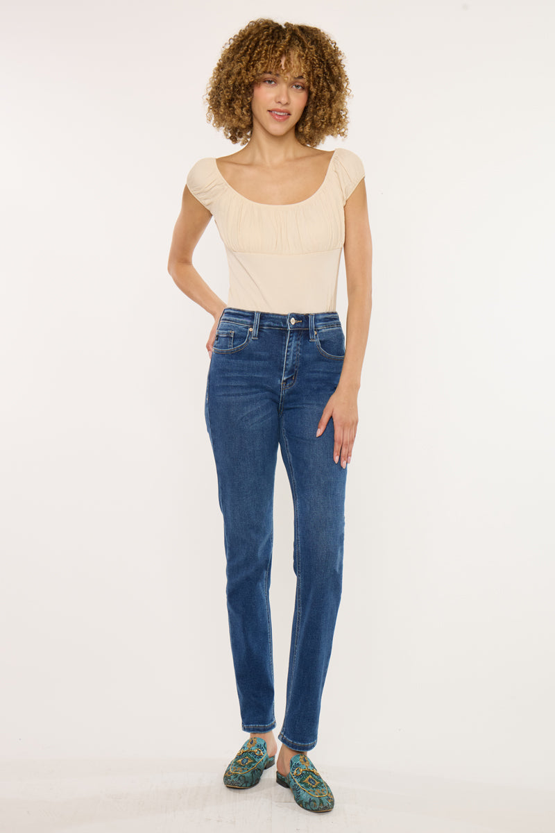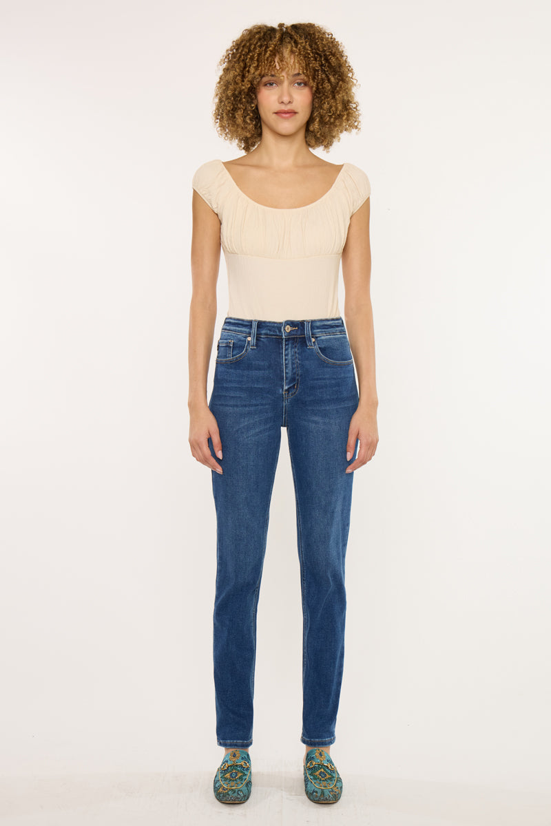 Add this timeless piece to your wardrobe. These Jovi Essentials High Rise Cigarette Jeans a slim silhouette and cut straight from your knee to ankle giving them the perfect fit. Made with our stretch to keep you comfortable and stylish all day long. Features a 5 pocket style, regular hem, and zip fly.