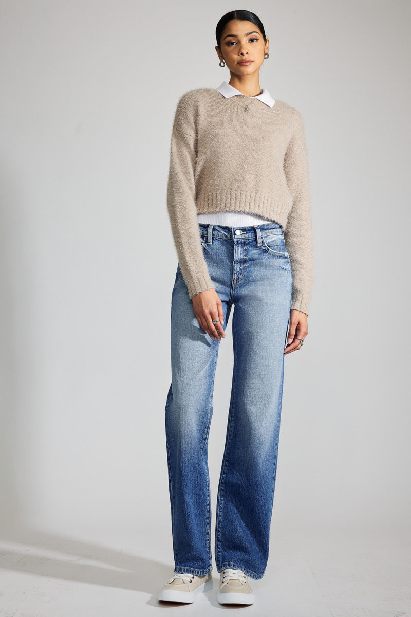 Our Julie Premier High Rise Straight Jeans are made domestically in small batches by a local wash factory in Los Angeles. Each pair of this denim is single-handly, finely washed in a beautiful medium color with medium fading on the front and back. Sits above the waist and relaxes throughout the leg for a straight leg fit. Features whiskering, minimal distress, 5-pocket style, one button closure, and zip fly. Feel good about what you wear in these premiere Kancan jeans.