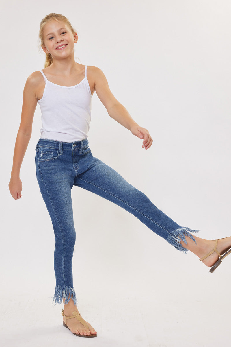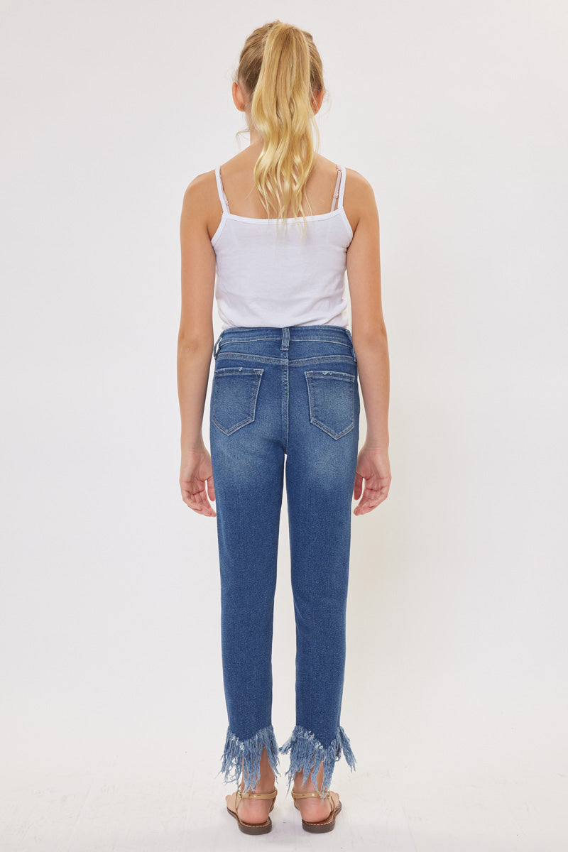 - Released hem, Regular 5 pockets, Single button front closure, Zip fly
