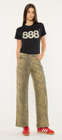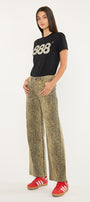 A new distinct style is our Juno Low Slung Baggy Wide Leg. Comes in a brown color with a python print that is meant to stand out. The trendy baggy fit with the wide leg silhouette makes this style a one of a kind. Meant to be worn low on the hips for that oversized baggy look but can size down for a preferred fitted look. Details like curved side seam, straight waist band that aren't as noticeable but complete the look.