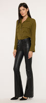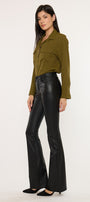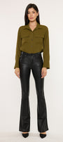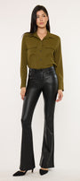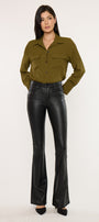 Kiwi Mid Rise Faux Leather Flare Jeans