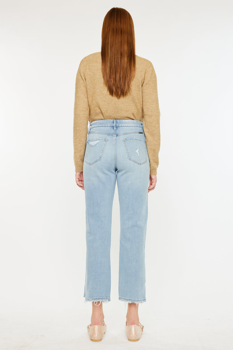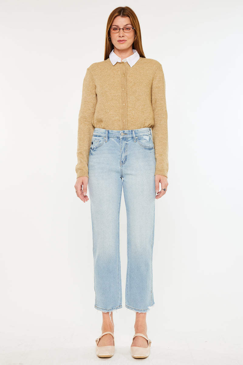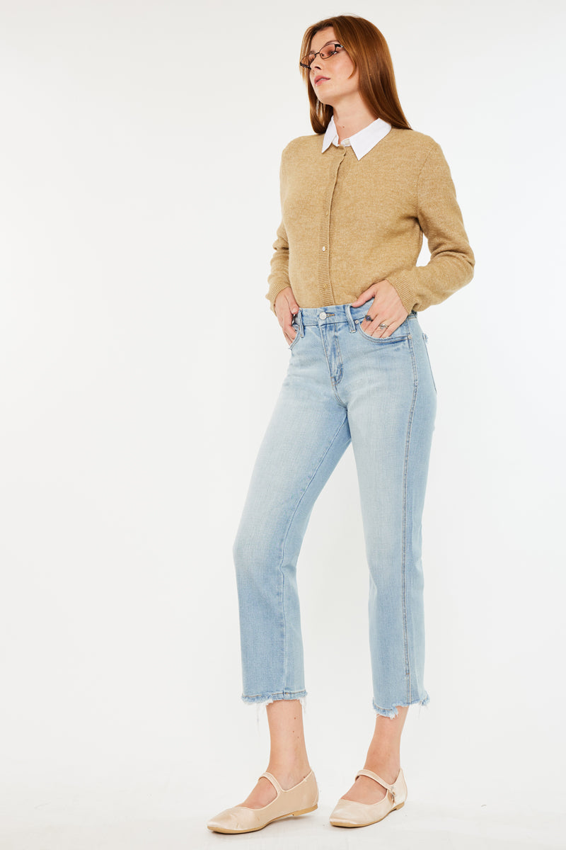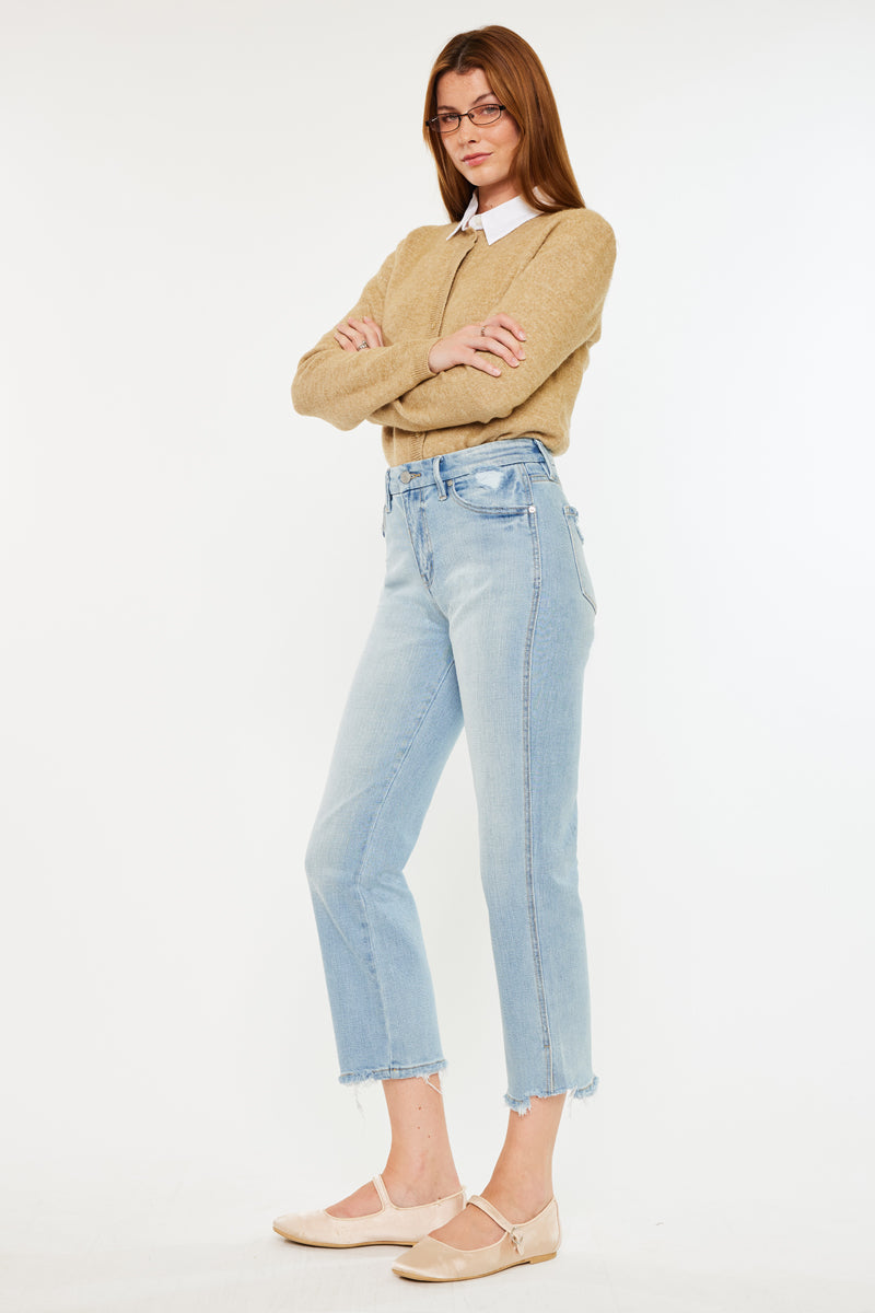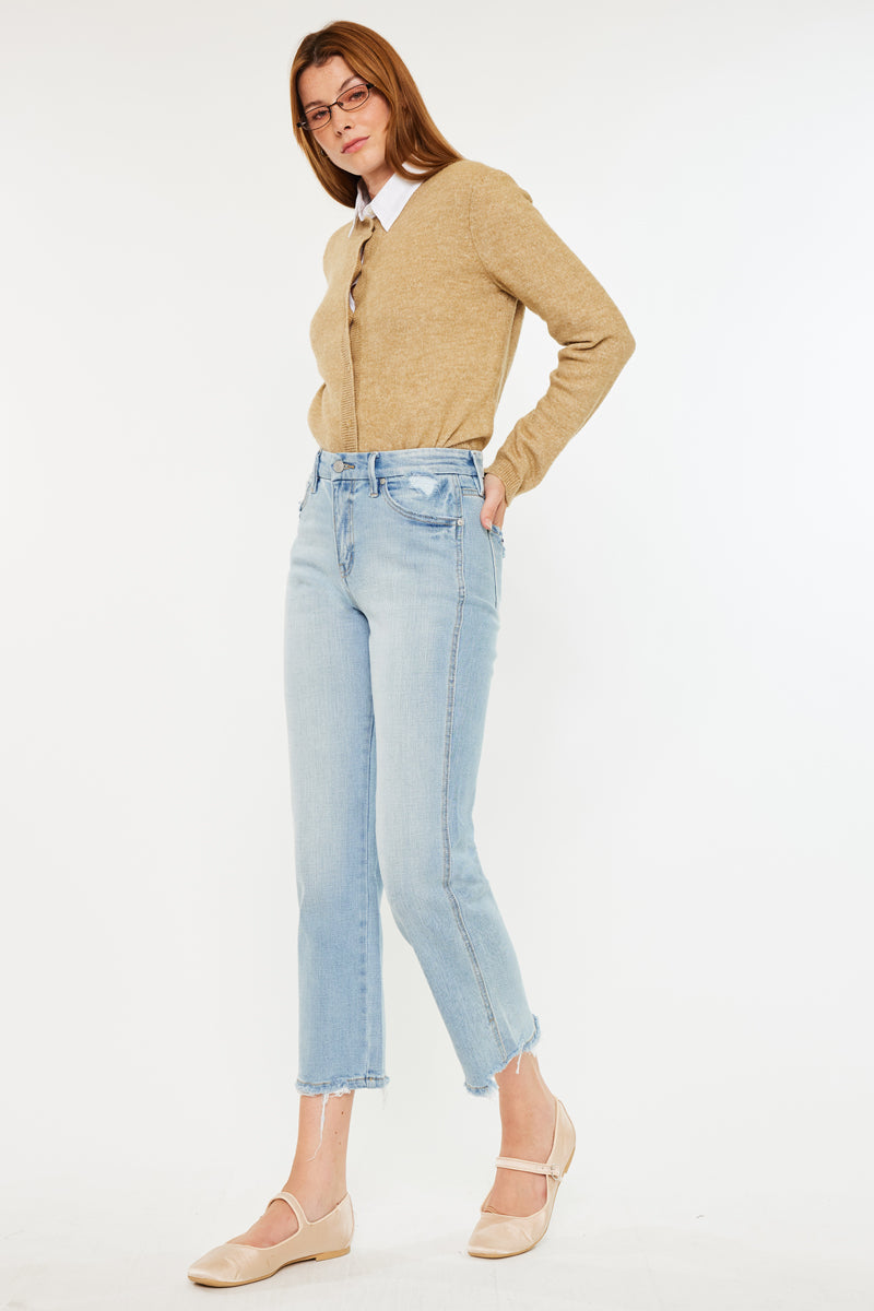 Lane High Rise Cropped Straight Jeans are your new everyday jeans! with a Light Was color that is easy to pair with any top or sweater! With a 1/2" Distressed Hem pairing it with your favorite shoe should be easy. Made with our ultra soft stretch denim that stays comfortable and breathable throughout the day. Features the classic 5-pocket style a side slit detail and single button zip fly closure.