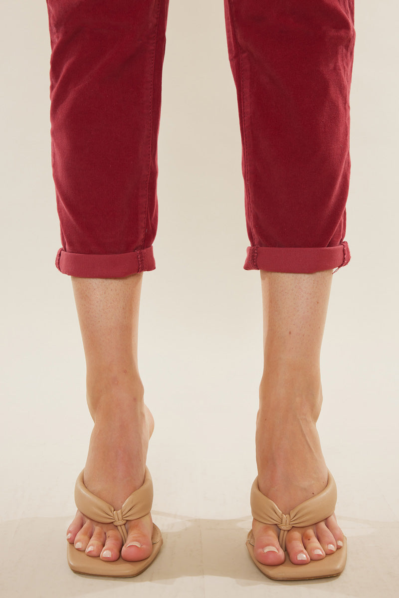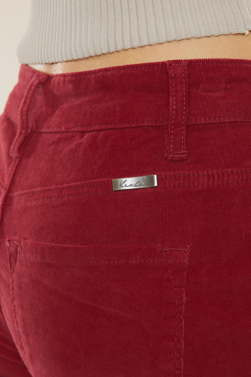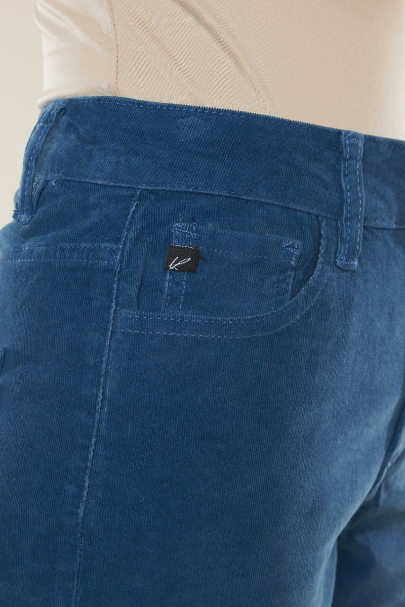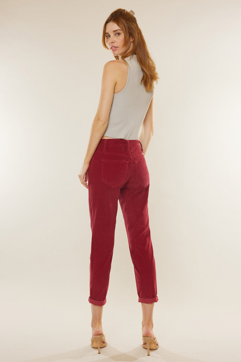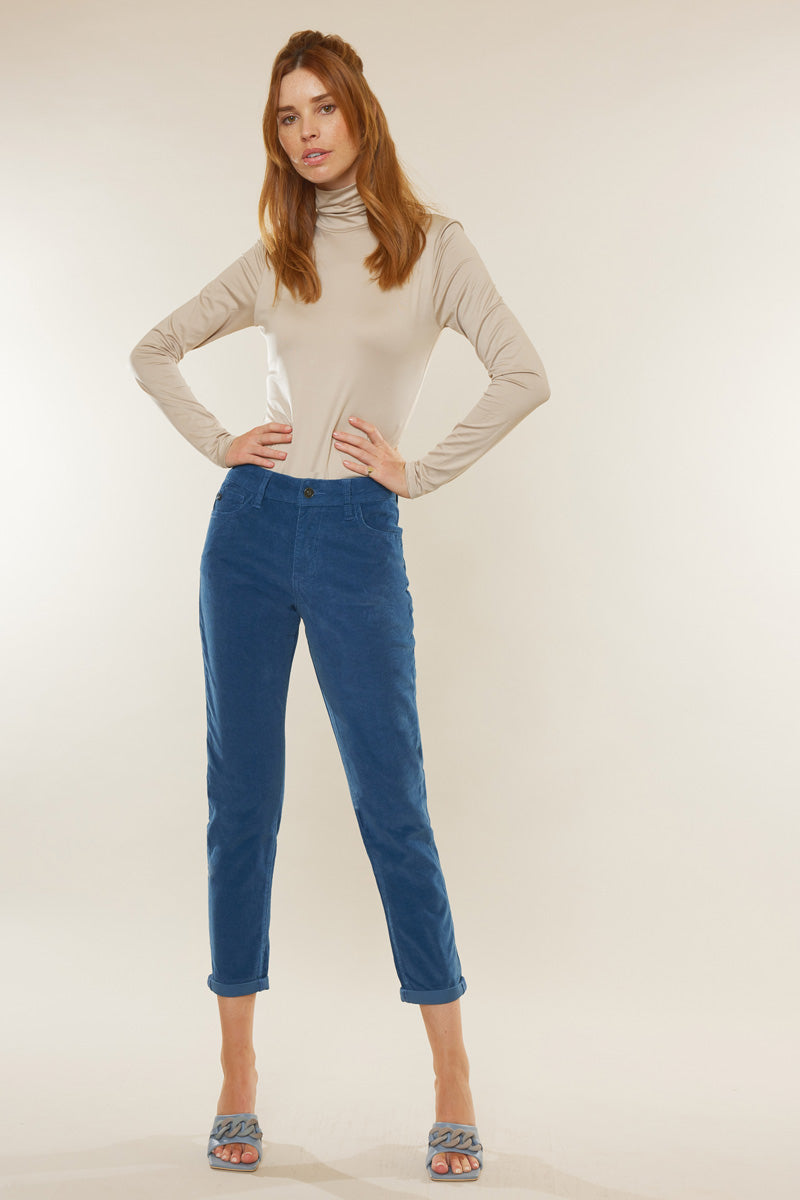 Our Leah High Rise Corduroy Mom Jeans come in a classic mom fit in both an aqua blue and red color. Sits above the natural waistline as they relax down the leg for a comfortable fit that's chic and trendy. Made with velvety soft corduroy fabric that's fitted for a tailored look that'll never go out of style. Features a classic five-pocket design, single-button front, and a zip-fly closure.