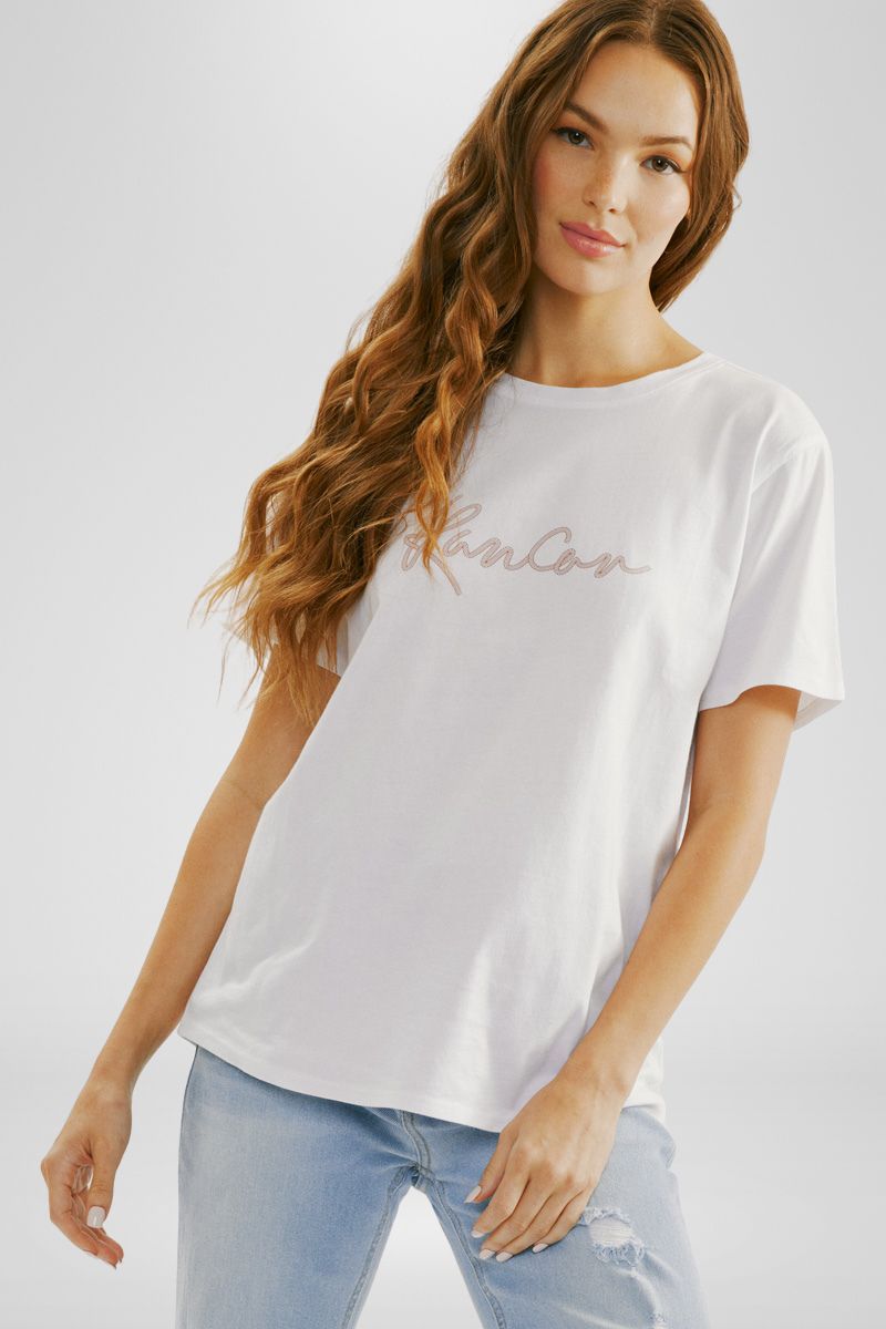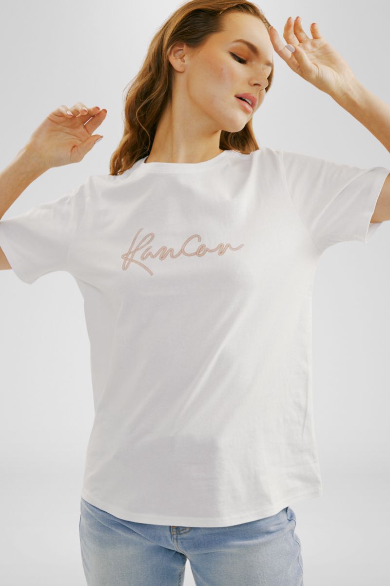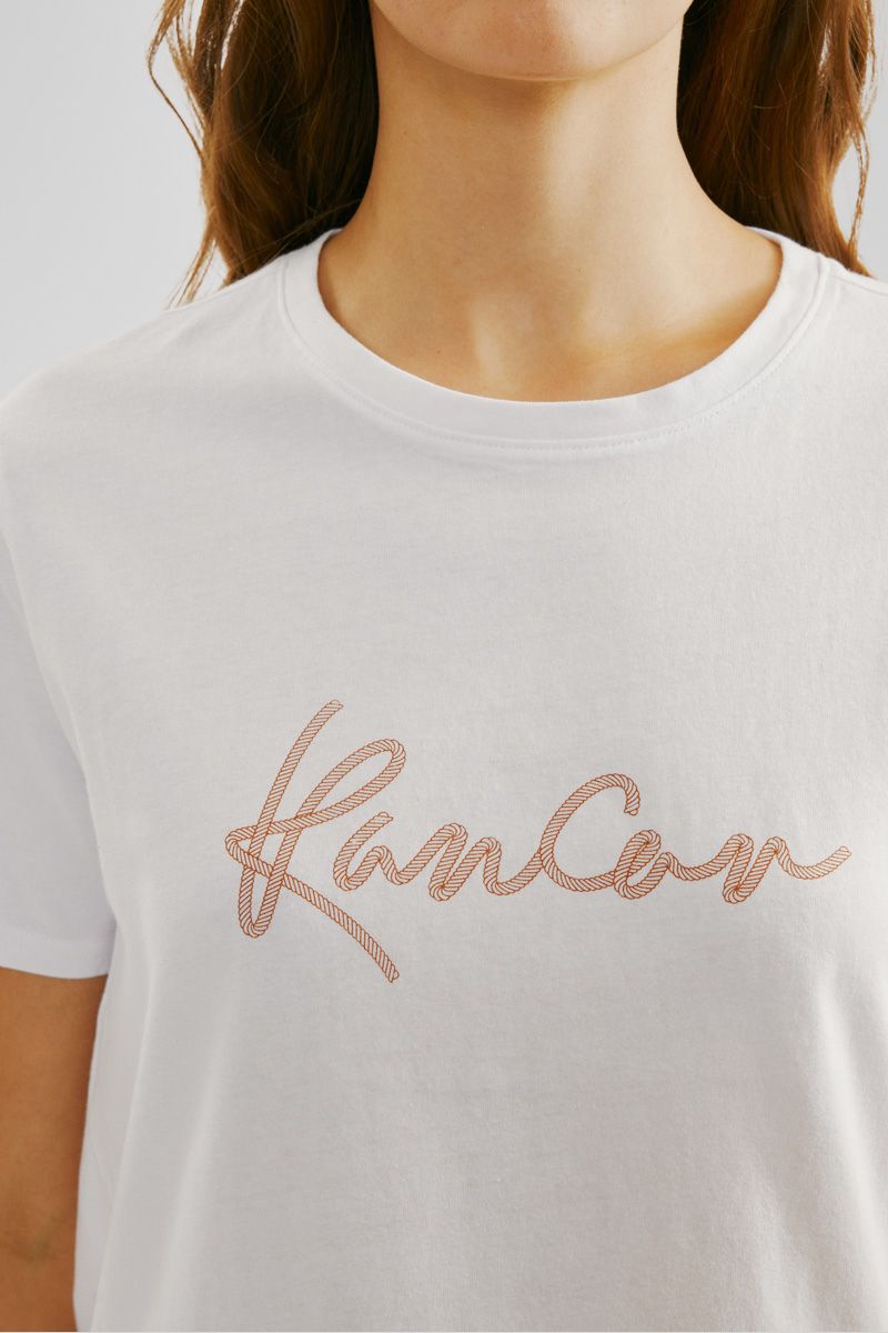 Show your love for Kancan with our Macy Shirt! Comes in a natural white color with a unique logo rope design. Comfortable to wear and lounge in where ever you are!