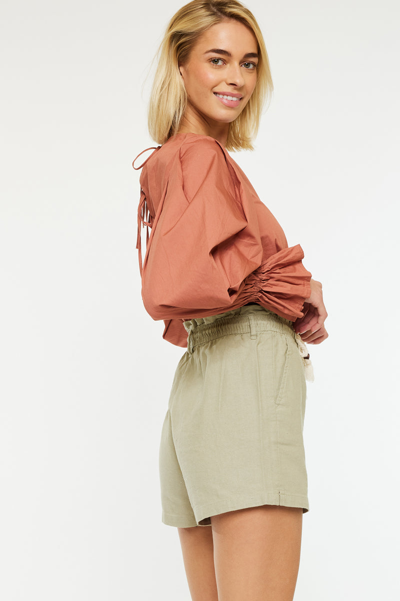 Looking for a fun, unique pair of shorts to pair with your favorite tops this summer? You can be an instant fashionista with our Maddox Shorts fitted with a paperbag waistband that is elastic and comes with a cream-colored drawstring with brown beads at the bottom for a fun contrast and take it to that next level of style. It comes in a loose relaxed fit designed to keep you comfortable and be able to move with ease on those hot summer days. Our Maddox shorts sit high above the natural waistline and cinch the waist creating that flatters the figure, comes with two front slanted pockets and none on the back that is perfect for a sunny beach day, or a coffee date.
