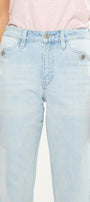 Our Maple High Rise Straight Jeans subtle whiskering detail. Our Maple sits above the natural waistline in a high-rise design that is flattering and relaxes down the leg. Features a 4-pocket design with little distress, 2 front pockets with single button closure, 1 button front closure, and a zip fly.