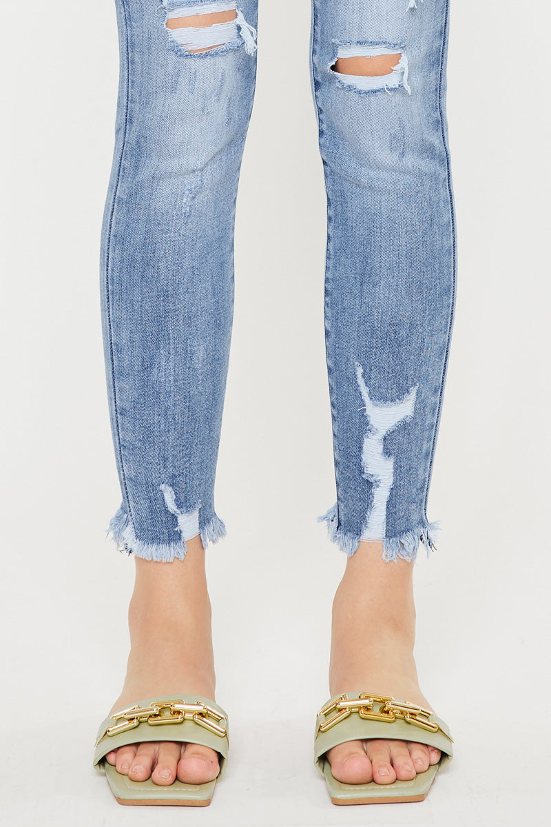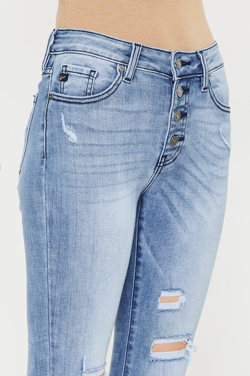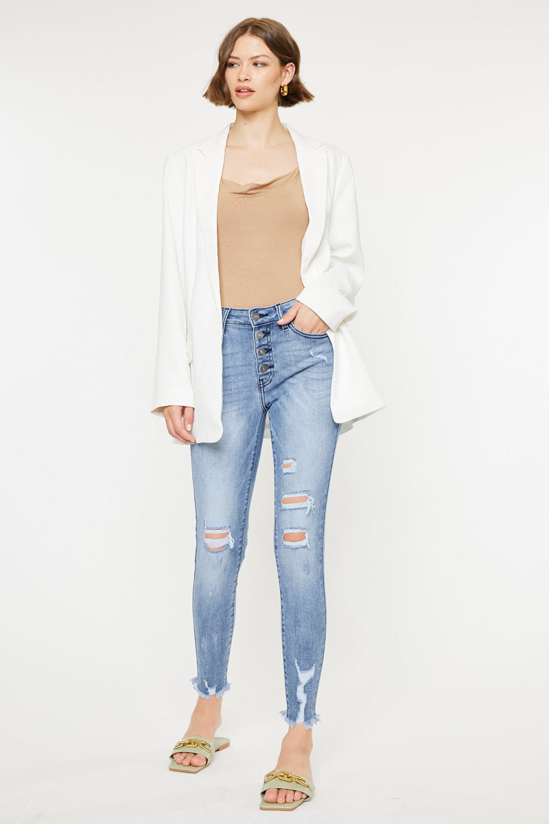 Our Maple High Rise skinny jeans sits above the natural waistline as it tapers down the leg creating a sleek silhouette that contours your body. Made with soft, stretch denim that's flexible and breathable. Features a classic five-pocket design and an exposed button fly.