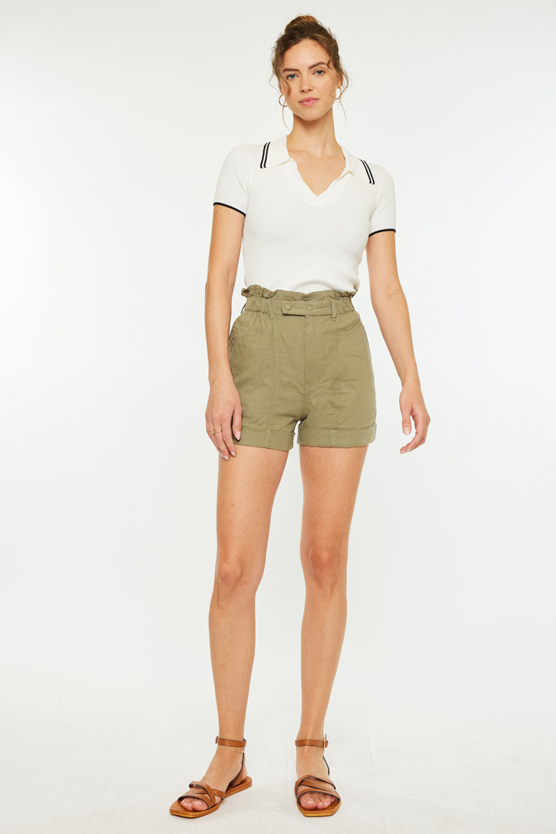 Our Marco Ultra High Rise Paperbag Shorts come in a soft linen/cotton blend that is breathable and lightweight made for your comfort. Features snap buttons on the waist, a zip fly closure, and a 4 pocket design.