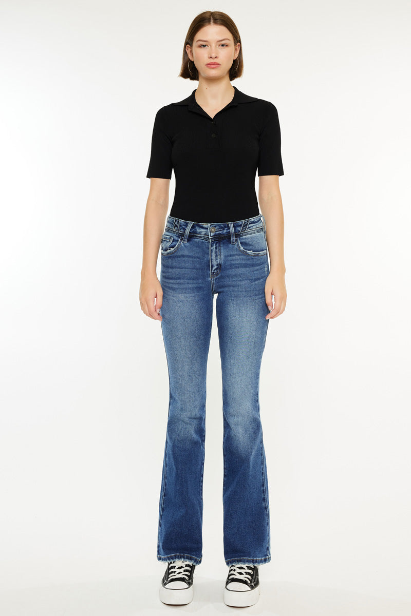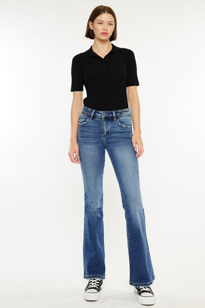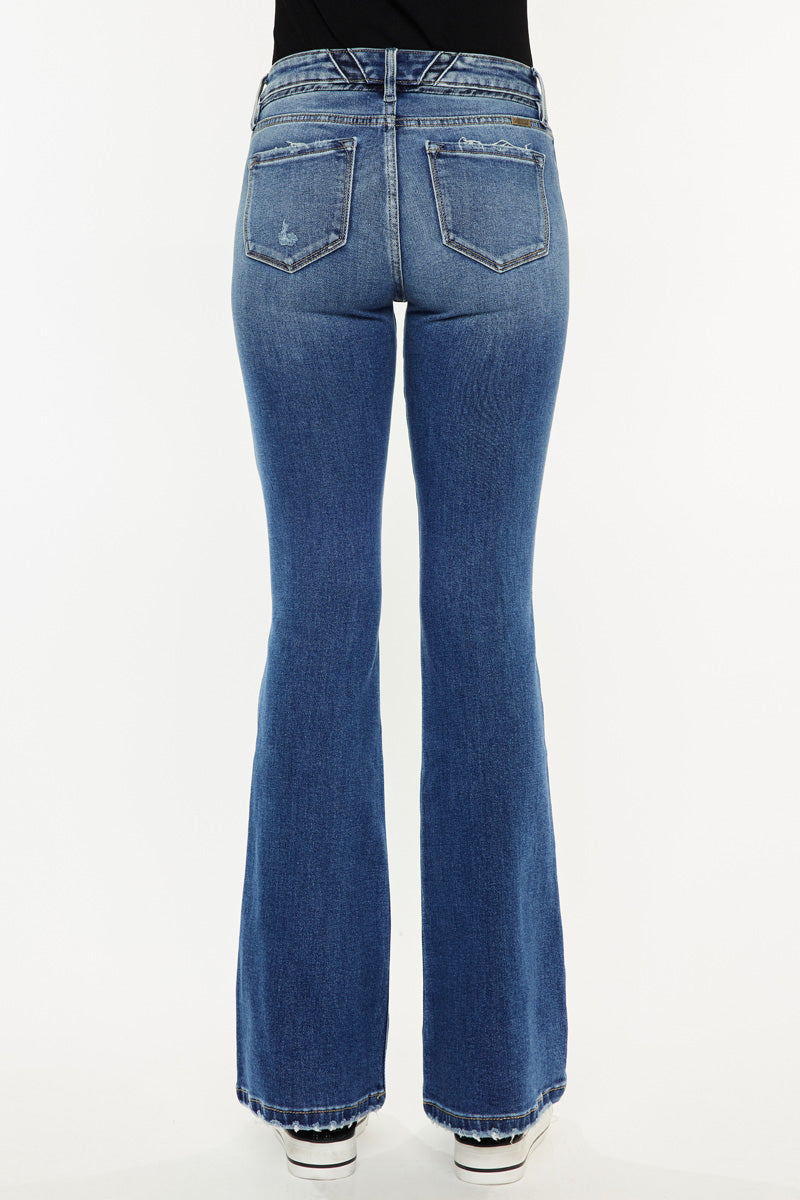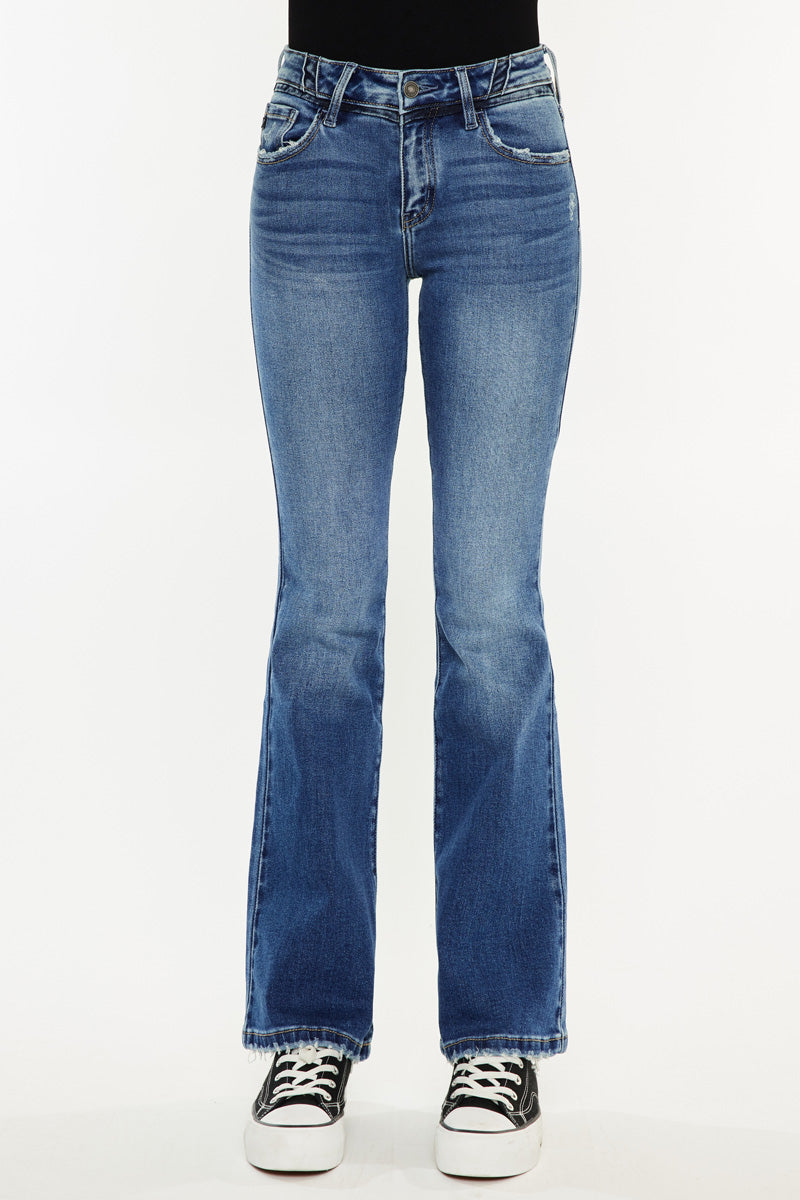 The Marline Mid Rise Flare Jeans boast a sophisticated dark wash that exudes elegance. The clean wash, zipper fly, and contrast detailing at the waistband all add to the luxurious feel of these premium jeans, while the stretch fabric ensures a comfortable and flattering fit.