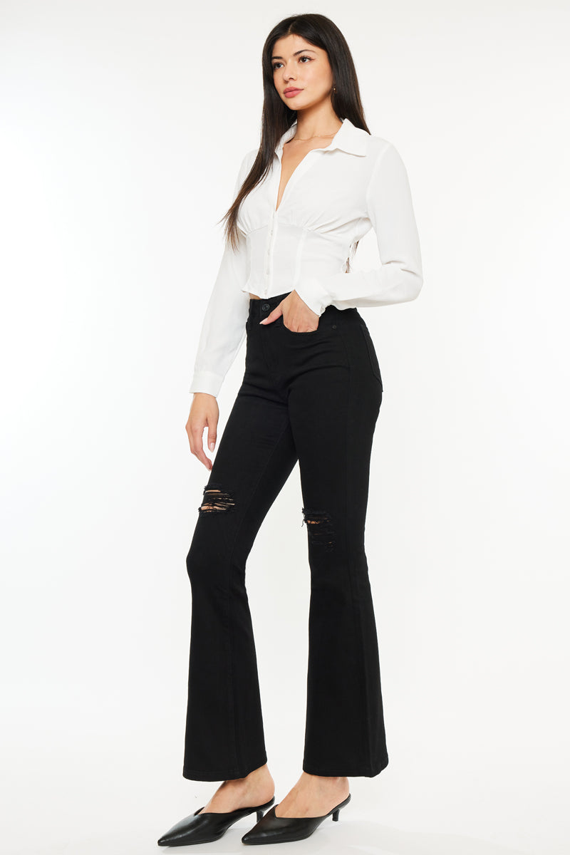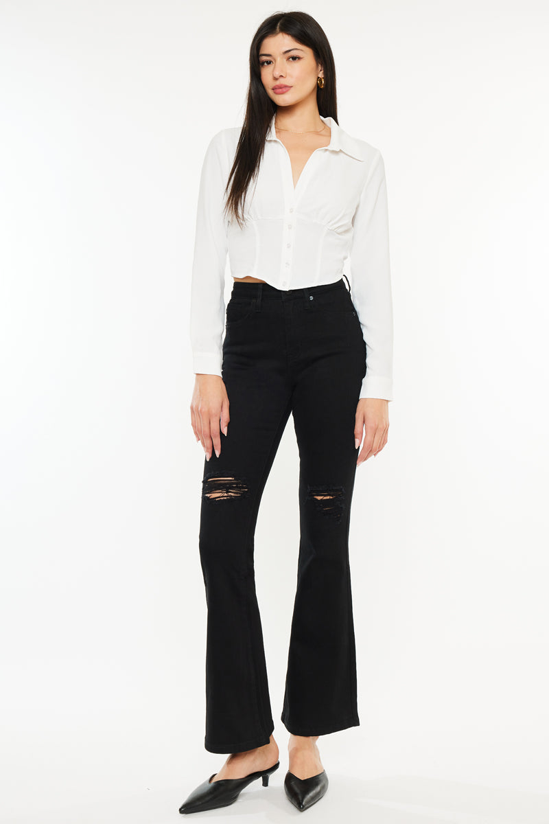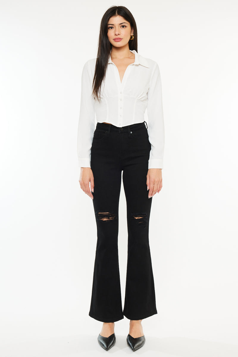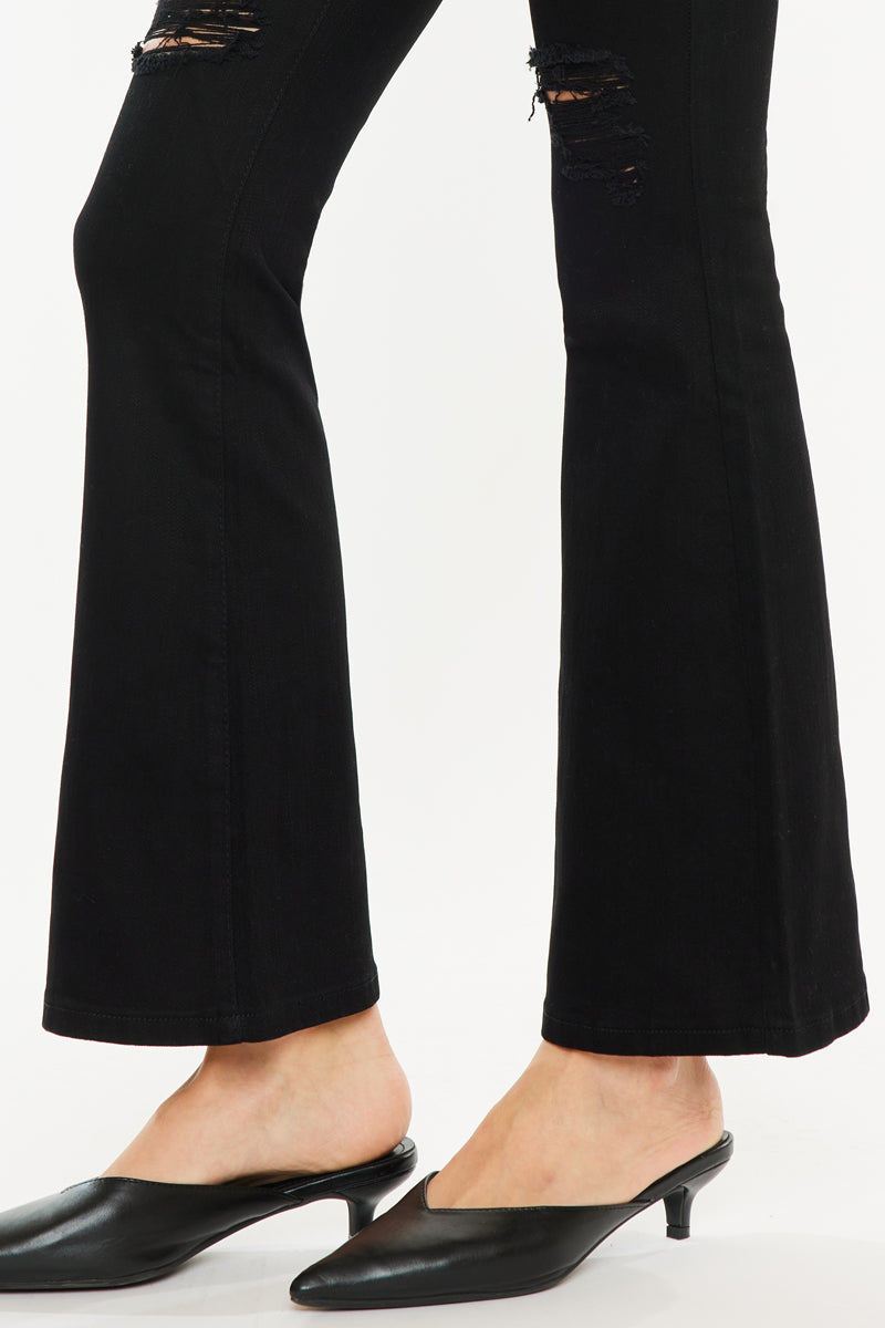 Introducing our latest addition to the denim collection, our Mars High Rise Flare Jeans. These jeans are designed to cater to the petite frame, ensuring a perfect fit for those with a smaller stature. The black wash adds a touch of sophistication to the distressed detailing, making it a versatile piece that can be dressed up or down. The high rise waistline provides a flattering silhouette, while the flare cut adds a touch of retro charm. The stretch fabric ensures maximum comfort and flexibility, making it an ideal choice for everyday wear.