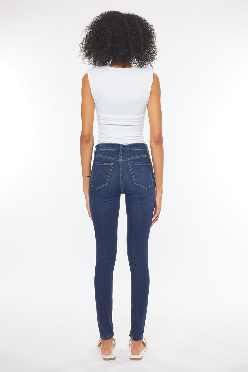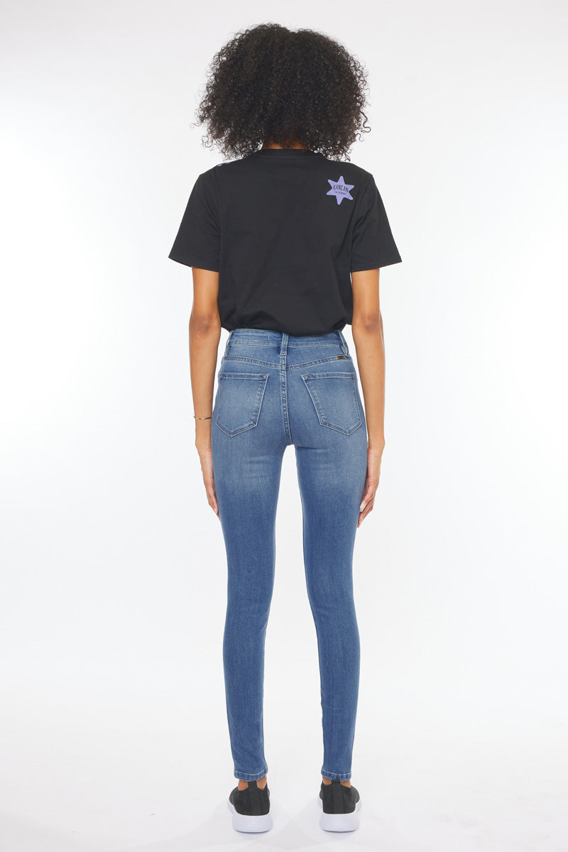How cute is this triple button super skinny? Rock it with any of your favorite tops! Featuring whiskering, fading, 5-pocket design, and zip fly closure.