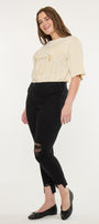 Our Peirson jean comes in a beautiful black denim with minor distress and a unique staggered hem. The fit comes in a classic ankle skinny, sitting just above the waist to accentuate its long silhouette. Pairs perfectly with simple outfits or dress it up with your favorite heels.