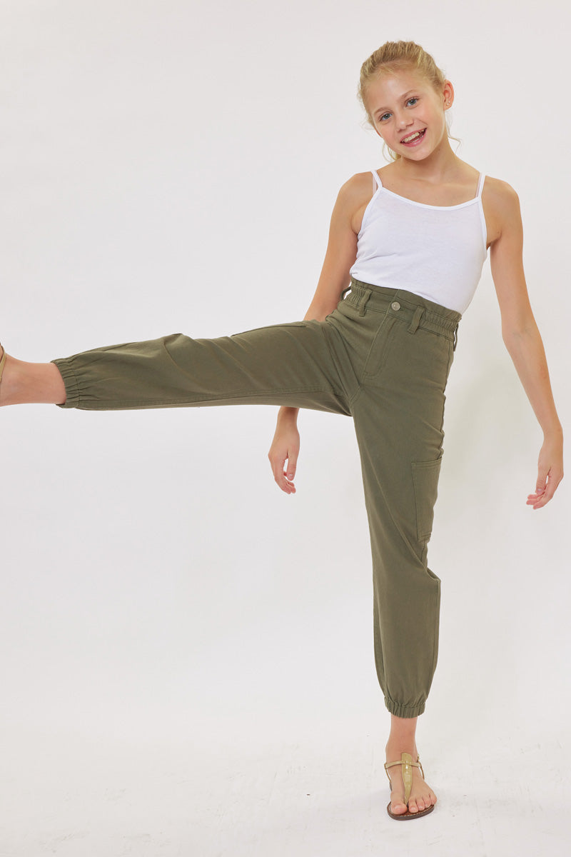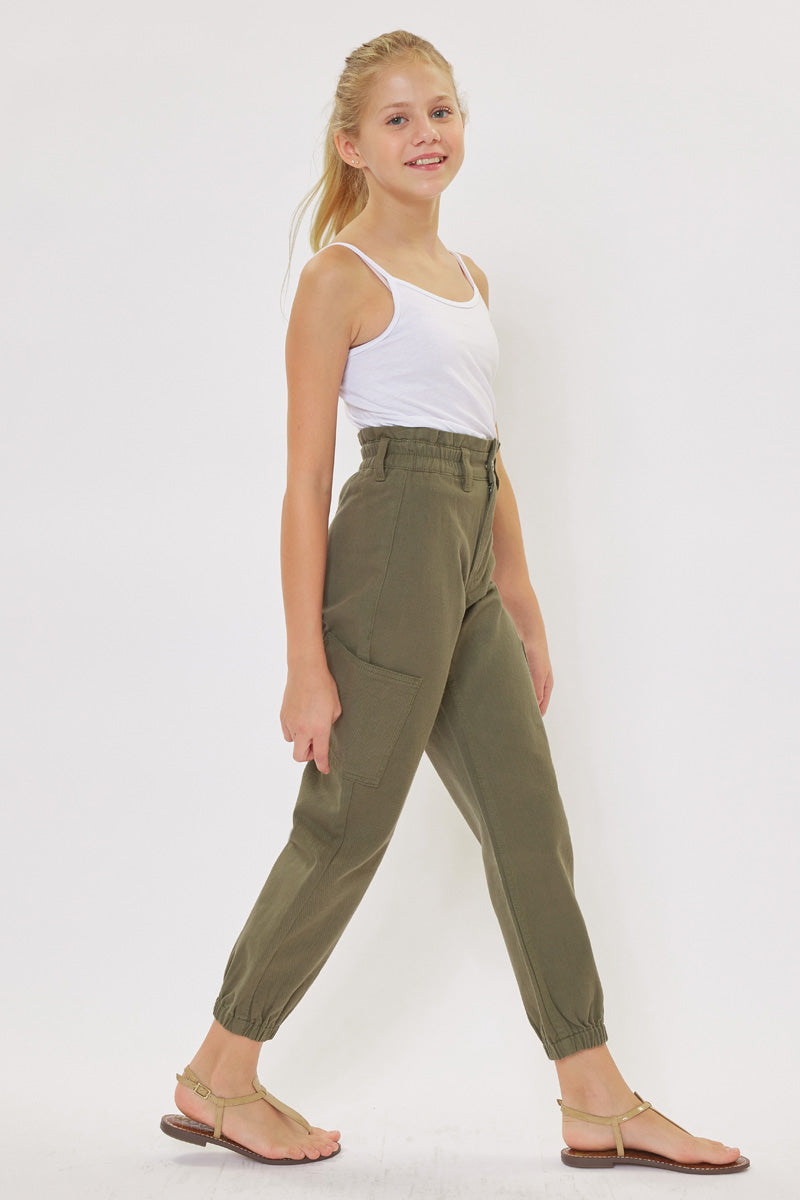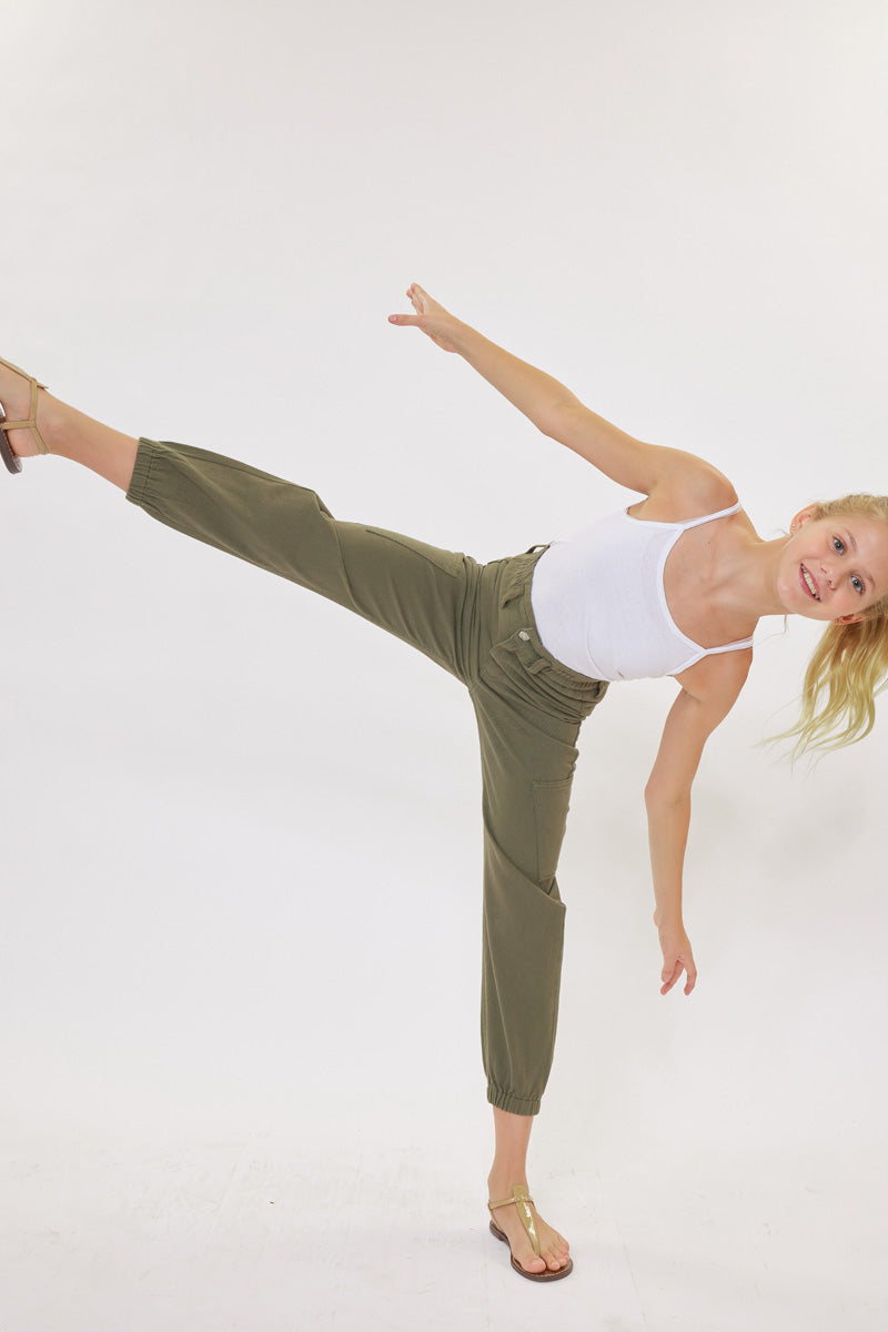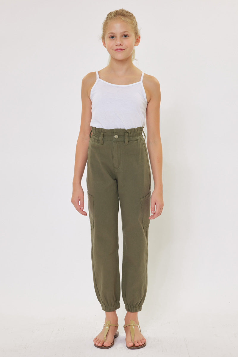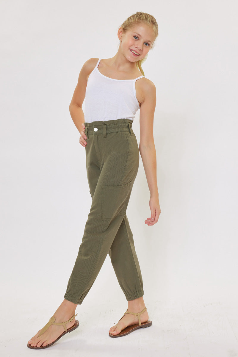 A relaxed fit comfort-stretch mom jeans featuring an easy tapered fit, mild fading, and whiskering. Made with our rigid denim so it won't bag out after multiple washes in the washer! Features two side patch pockets, an elastic band at the waist band and on the bottom hem.