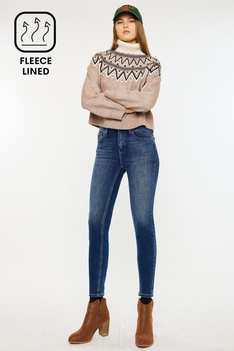 Our Rochelle High Rise Super Skinny Jeans, the ultimate combination of style and comfort. These jeans are meant to hug your curves and provide a sleek and streamlined look. The high-rise waistband offers a flattering fit and helps elongate your legs, while the super skinny cut creates a modern and trendy silhouette. But what sets these jeans apart is the luxurious fleece lining, which adds and extra layer of warmth and coziness. Perfect to rock on those chilly days, these jeans will keep you snug and stylish.