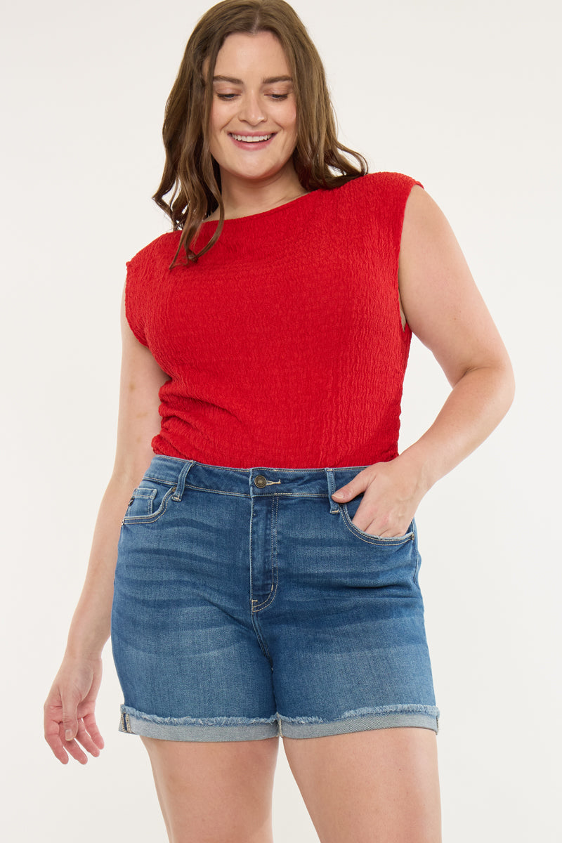 This medium wash short features a regular hem with distress and whiskering detail. Its style accentuates every curve giving you a sleek yet fitted silhouette that complements any vibe. Sitting right at the natural waistline with a high-rise and classic five-pocket design and single-button closure. It's a refreshing take on a classic short design.