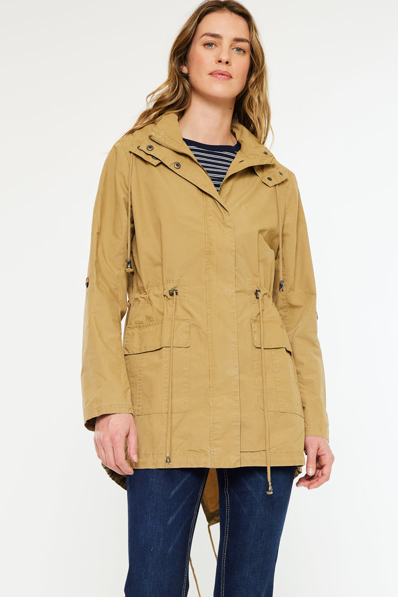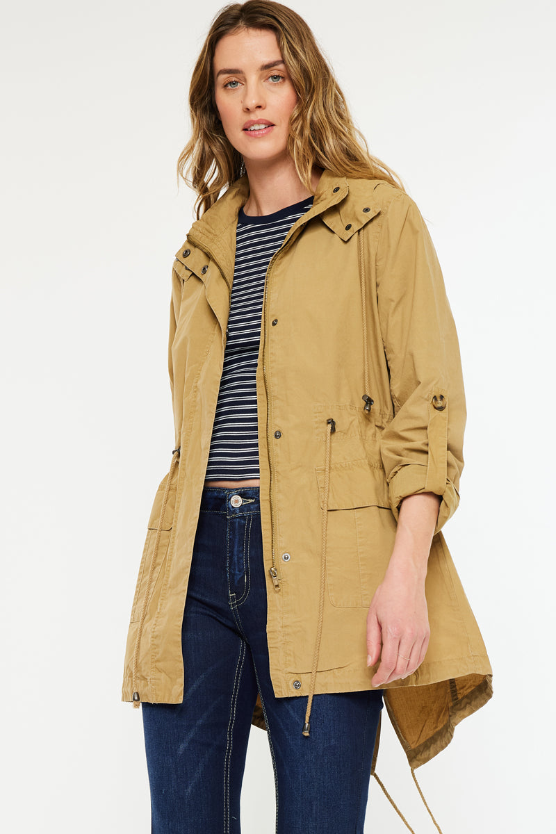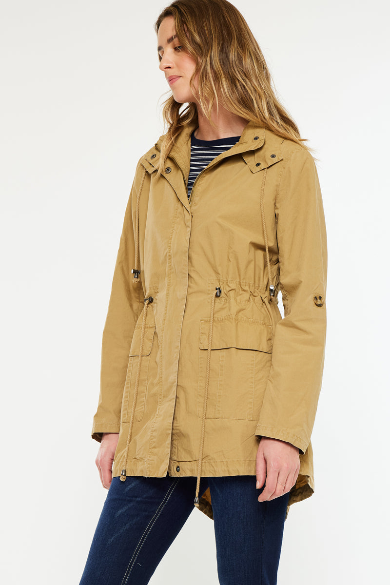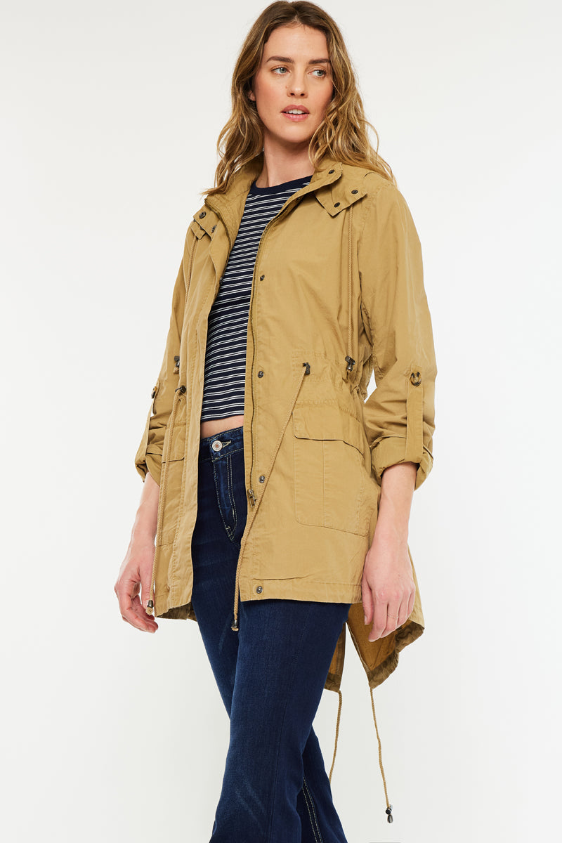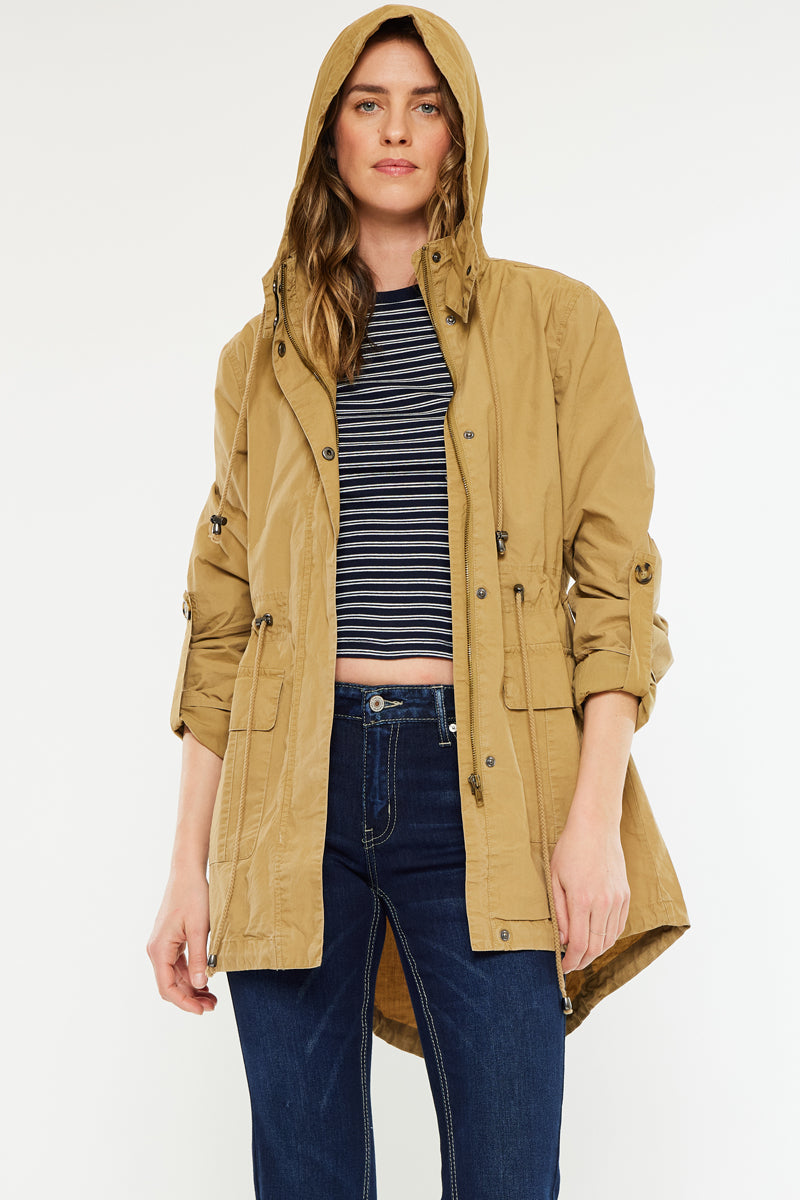 Our Tarsier Utility Parka Jacket is perfect for road trips or just everyday wear. This parka jacket has a buttery feel and maxed out on durability. Its detachable hoodie and rolled-up button sleeve have interchangeable features that are perfect for every season. It features a waist drawstring to clench at the waist for an hourglass figure and patch pockets to hold your favorite items.
