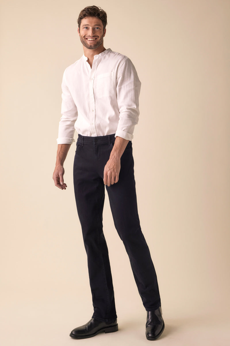 Every guy needs a staple pair of black jeans. Featuring minimal hardware, a straight fit, black wash, a single button zip fly closure at front, and a 5-pocket design, this style is perfect for any occasion.