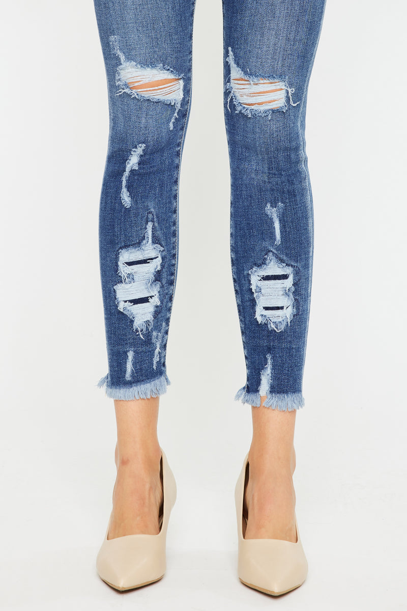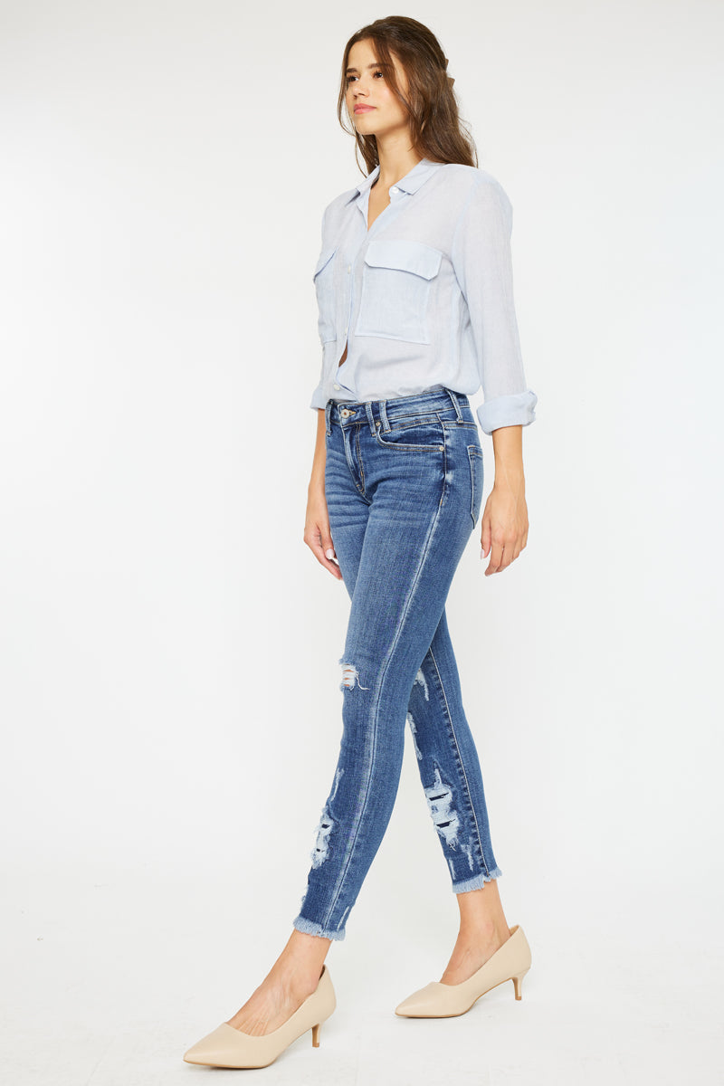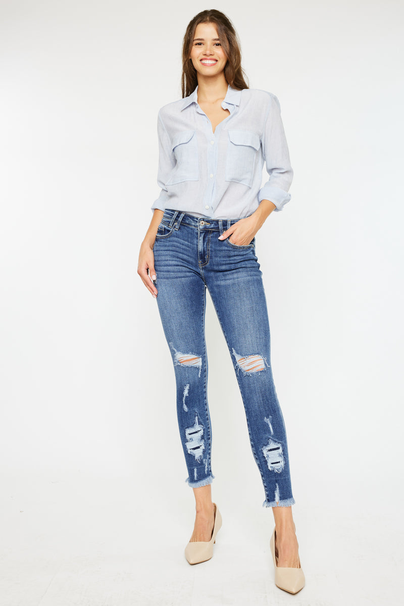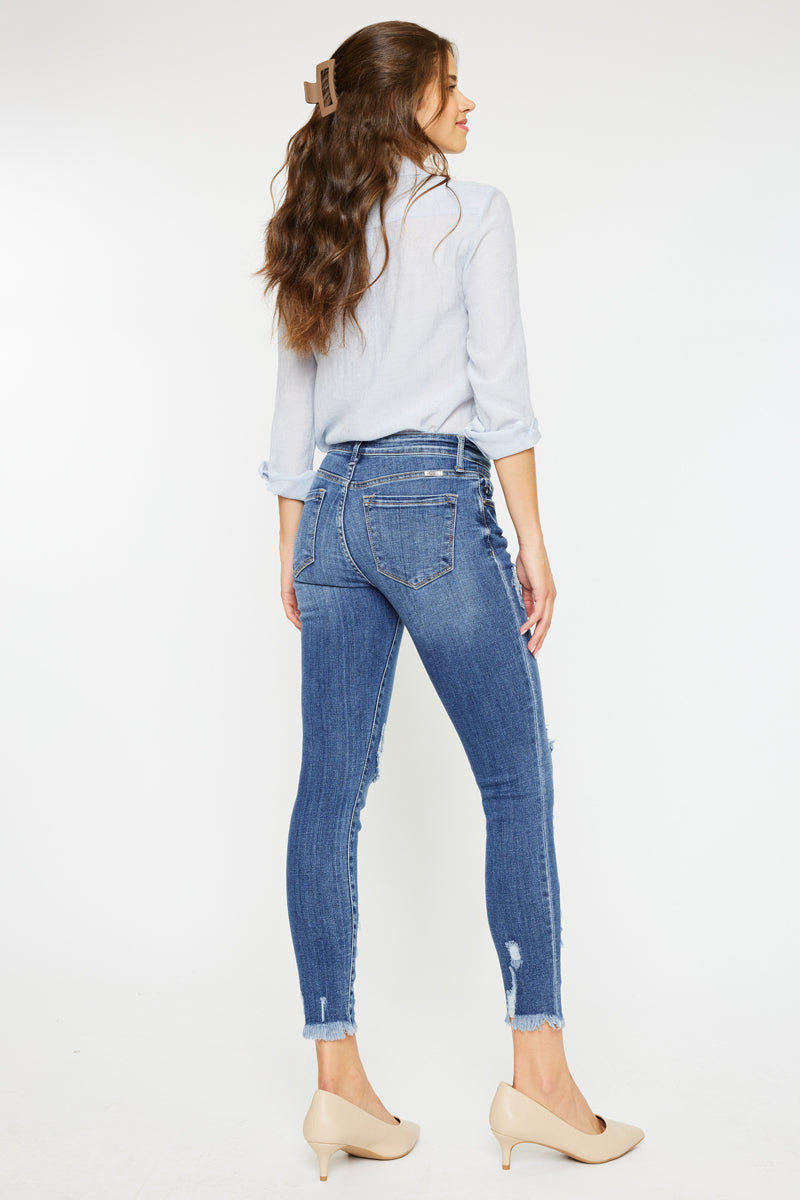 You'll love our Trixie Mid Rise Ankle Skinny Jeans that are sure to turn heads everywhere you go! Create a fun, spunky vibe for any outfit! Featuring fading, whiskering, optimal distress details, and a raw staggered hem. Made with a super-stretchy denim blend and comes with a regular 5-pocket design, single-button closure, and a zip fly.