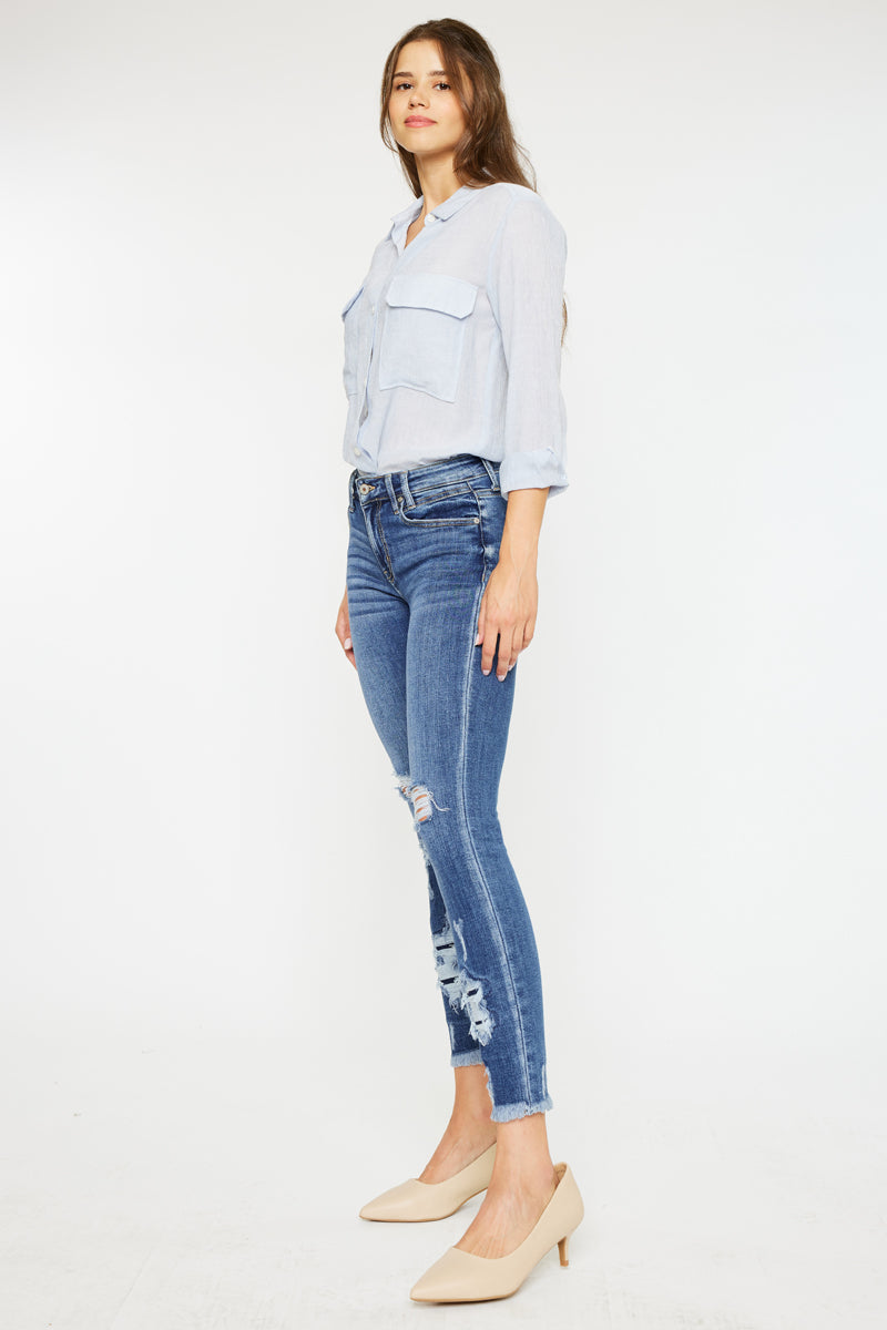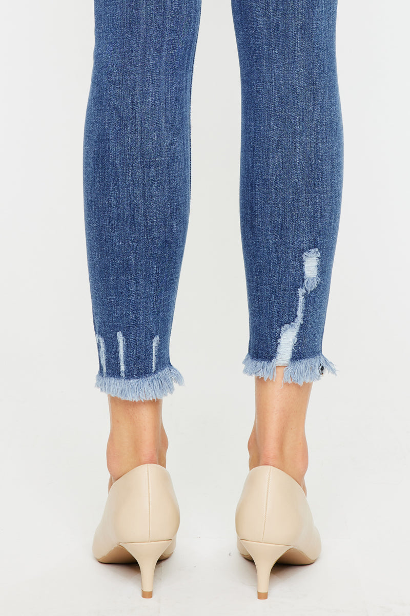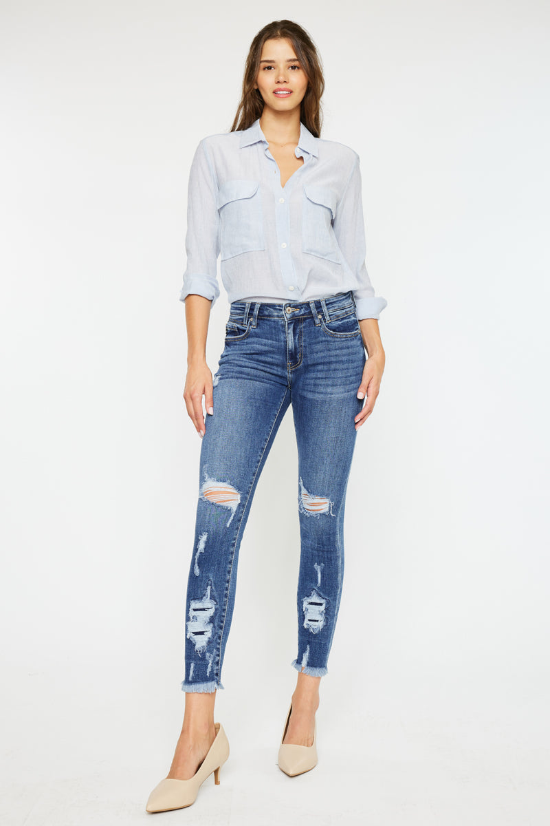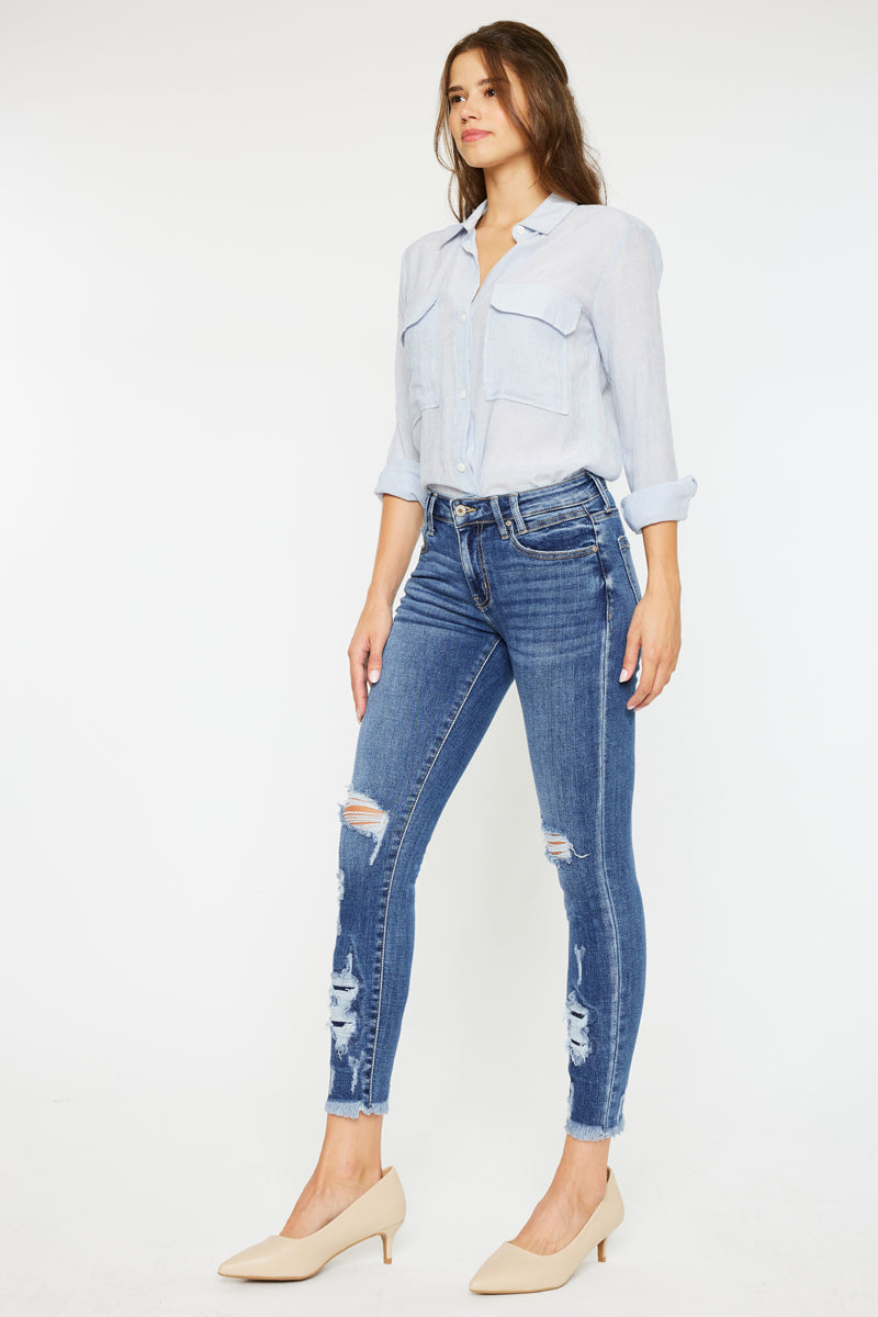 You'll love our Trixie Mid Rise Ankle Skinny Jeans that are sure to turn heads everywhere you go! Create a fun, spunky vibe for any outfit! Featuring fading, whiskering, optimal distress details, and a raw staggered hem. Made with a super-stretchy denim blend and comes with a regular 5-pocket design, single-button closure, and a zip fly.